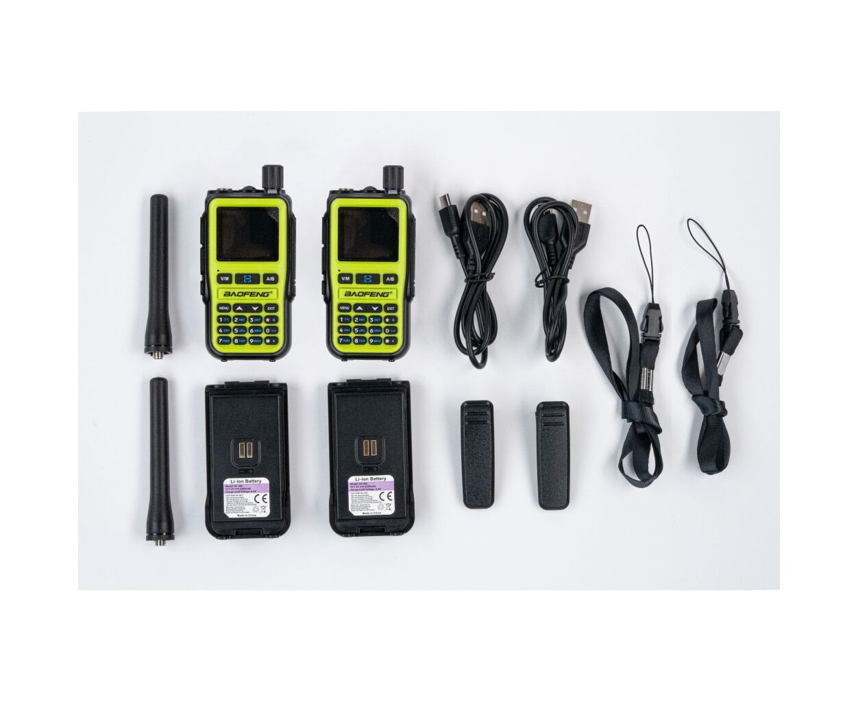 - Рація - 2 шт Зарядний кабель USB Type C - 2 шт Антена - 2 шт Акумулятор - 2 шт Кліпса для кріплення на ремінь - 2 шт Шнурок на руку - 2 шт Інструкція (англ) - 1 шт
