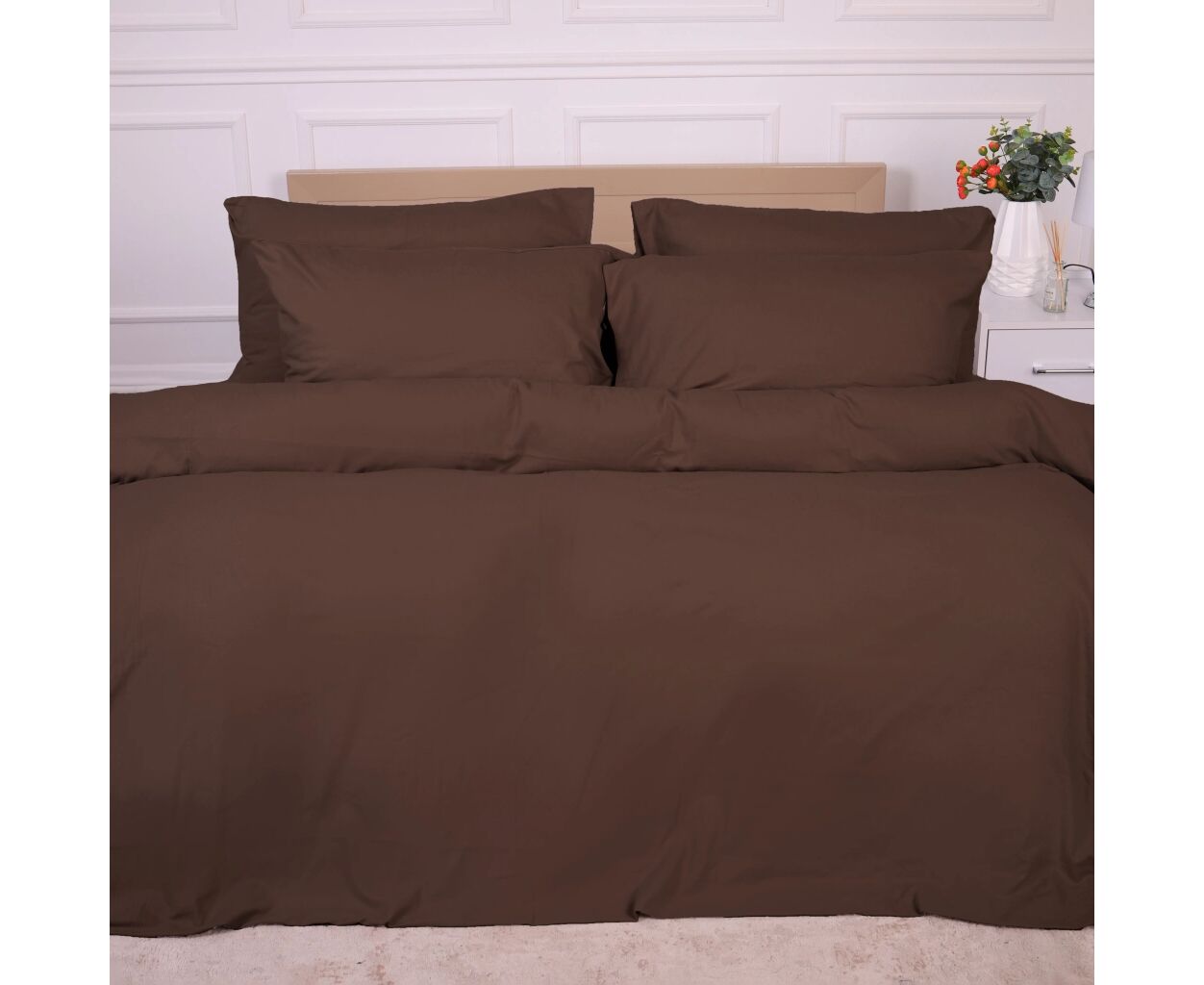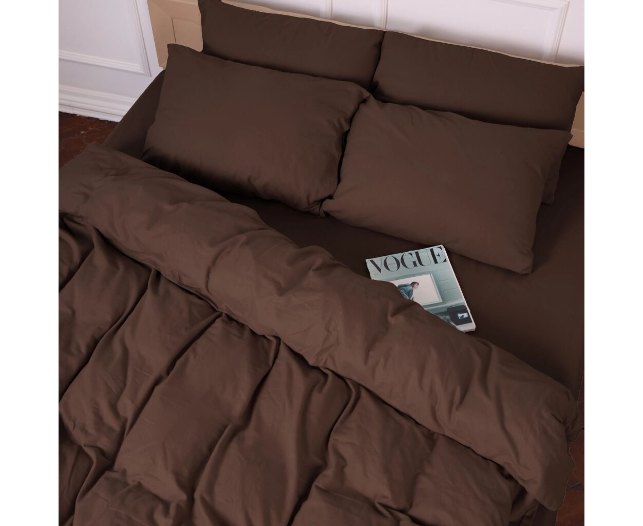 сімейний, Простирадло - 220 x 240 см, Підковдра - 143 х 210 см, Наволочка - 50 х 70 см, фланель, 2 шт., 2 шт., однотонні моделі, фірмова упаковка, на блискавці, коричневий