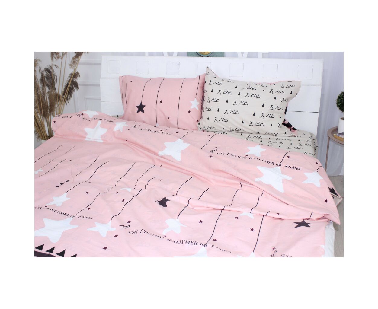 двоспальний, бязь, у смужку, з принтом, з дрібним малюнком, з принтом «зірка», подарункова упаковка, рожевий з бежевим