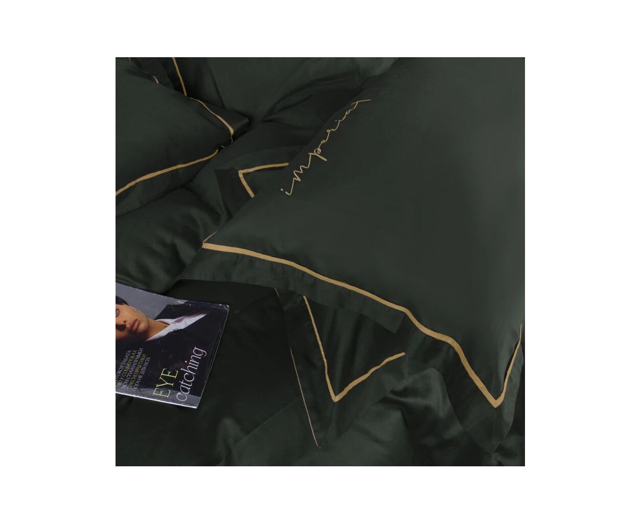 євро, Простирадло - 220 x 240 см, Підковдра - 200 x 220 см, Наволочка - 50 х 70 см, сатин, 1 шт., 2 шт., однотонні моделі, фірмова упаковка, на блискавці, темно-зелений