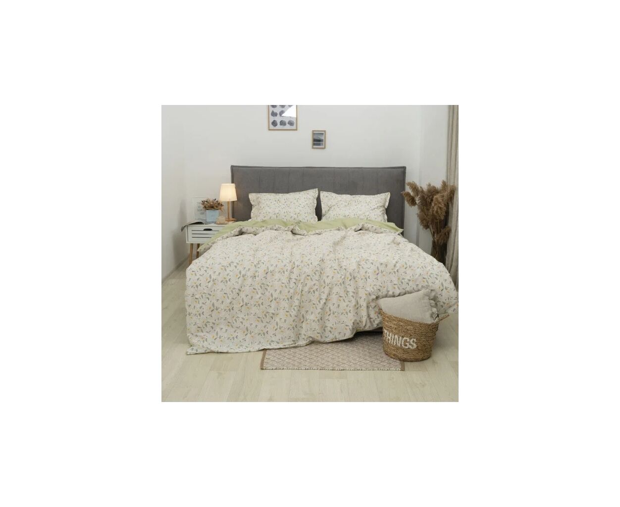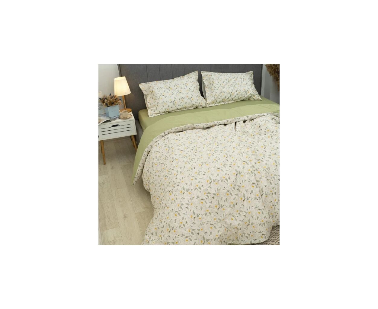 сімейний, Простирадло - 230 х 260 см, Підковдра - 143 х 210 см, Наволочка - 50 х 70 см, сатин люкс, 2 шт., 2 шт., з квітковим принтом, подарункова упаковка, на блискавці, бежевий