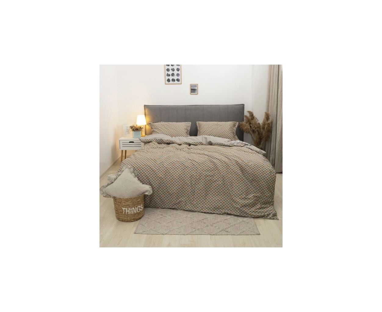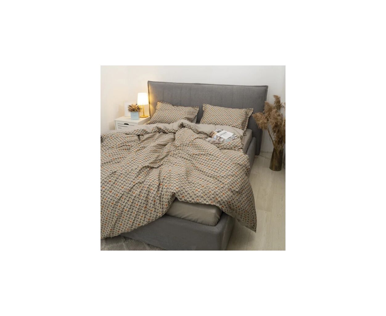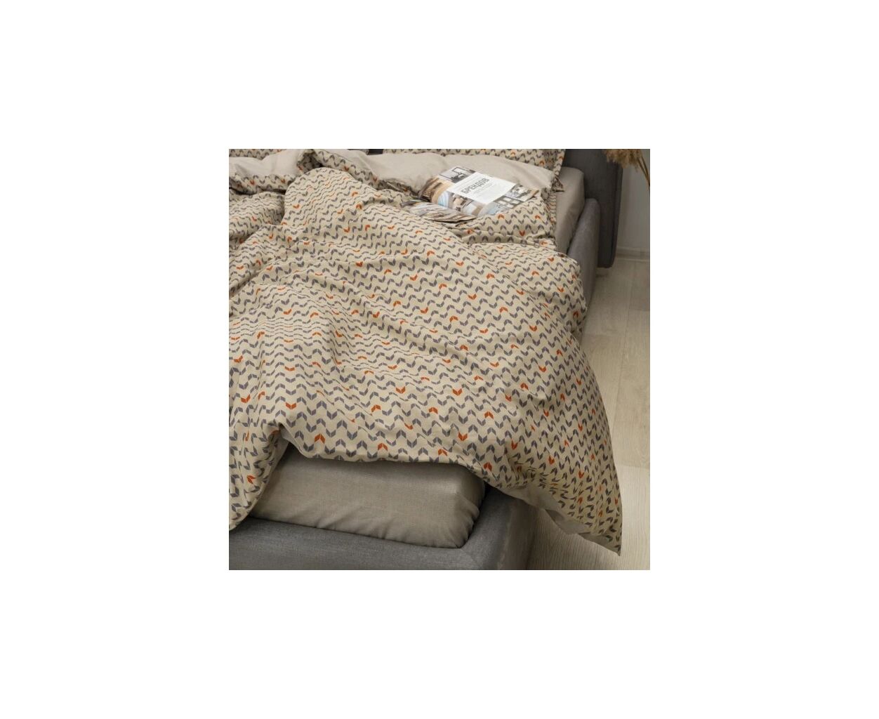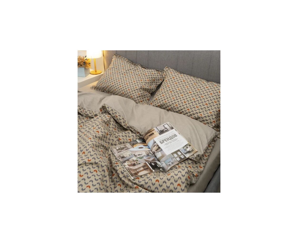 сімейний, Простирадло - 230 х 260 см, Підковдра - 143 х 210 см, Наволочка - 50 х 70 см, сатин люкс, 2 шт., 2 шт., з абстрактним принтом, подарункова упаковка, на блискавці, бежевий