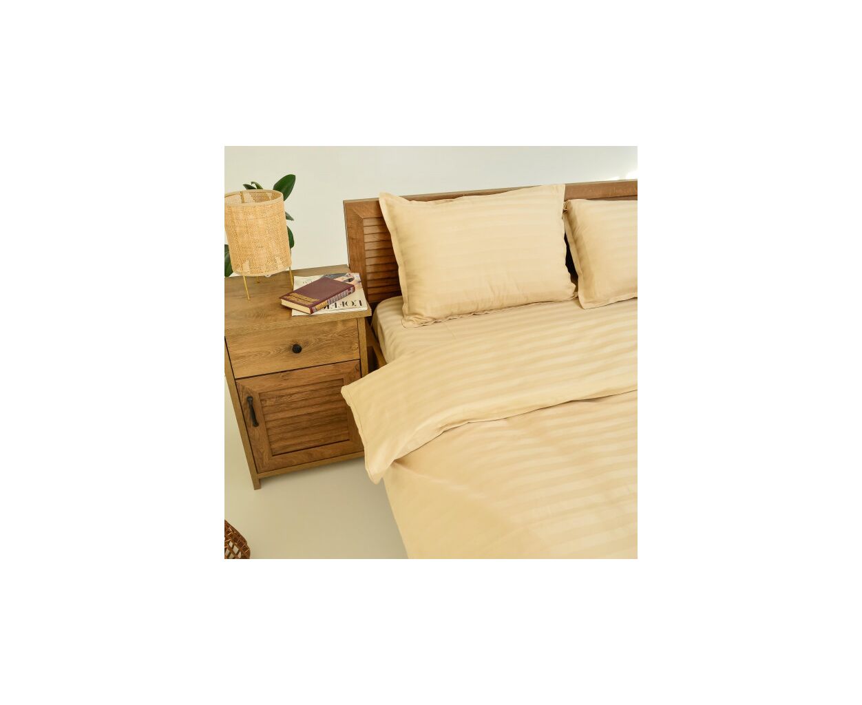 двоспальний, Простирадло - 200 x 220 см, Підковдра - 175 х 210 см, Наволочка - 50 х 70 см, сатин страйп, 1 шт., 2 шт., у смужку, однотонні моделі, на блискавці, бежевий