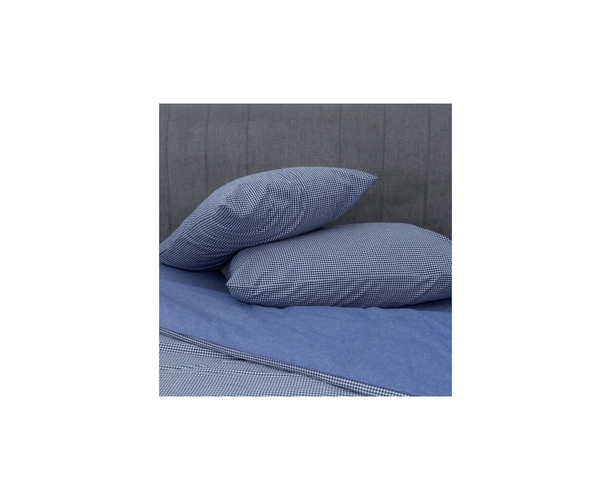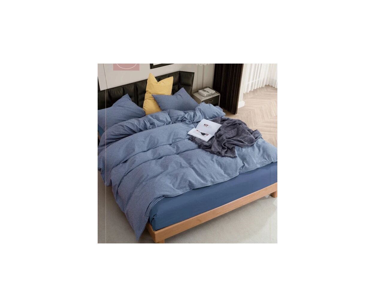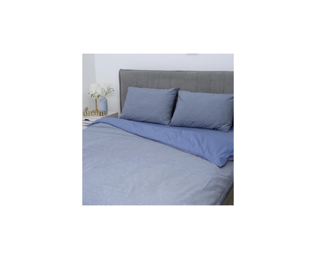 євро, Простирадло - 240 х 260 см, Підковдра - 200 x 220 см, Наволочка - 50 х 70 см, варена бавовна, 1 шт., 2 шт., у клітинку, фірмова упаковка, на блискавці, синій