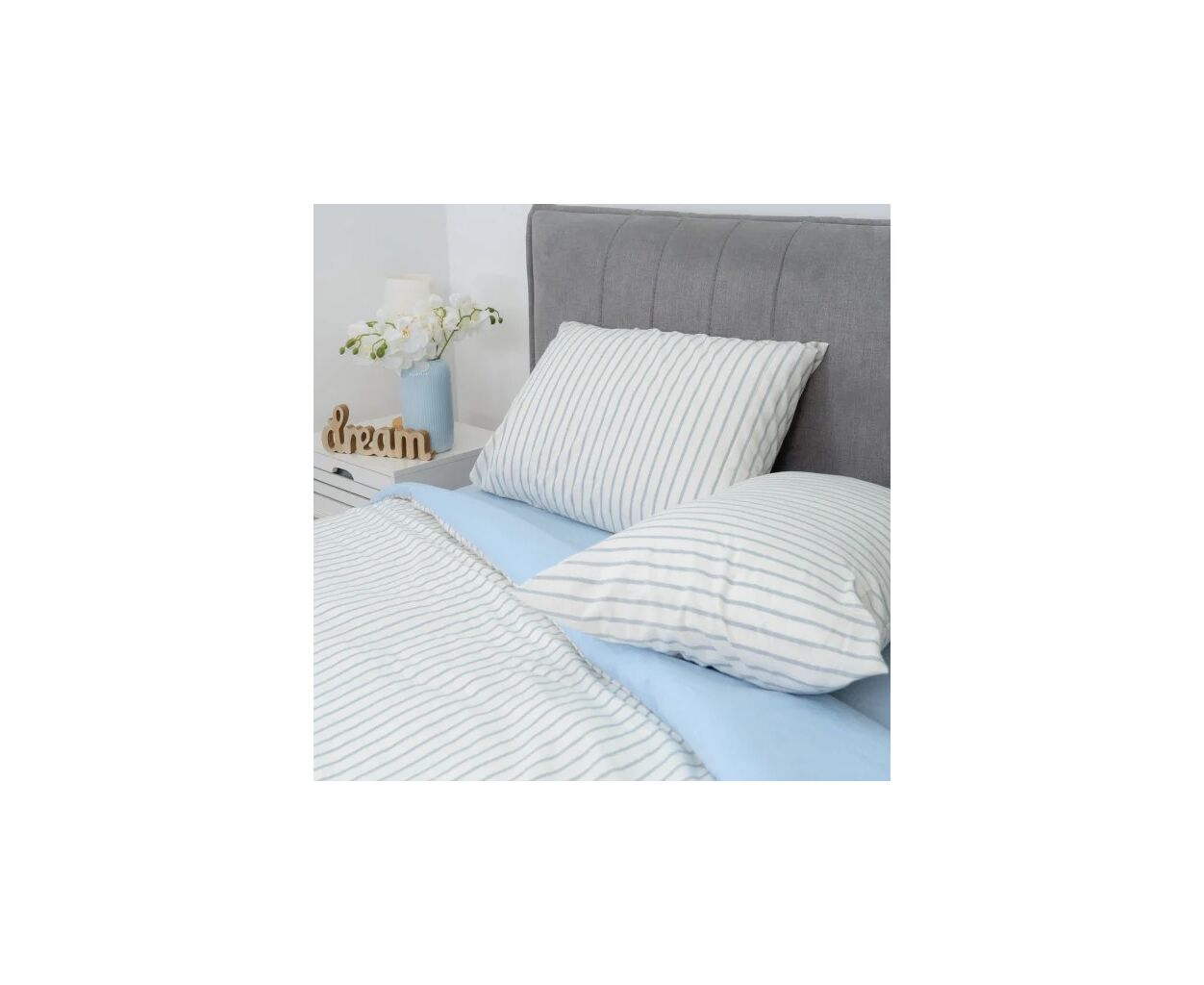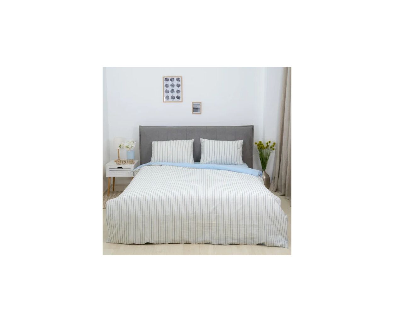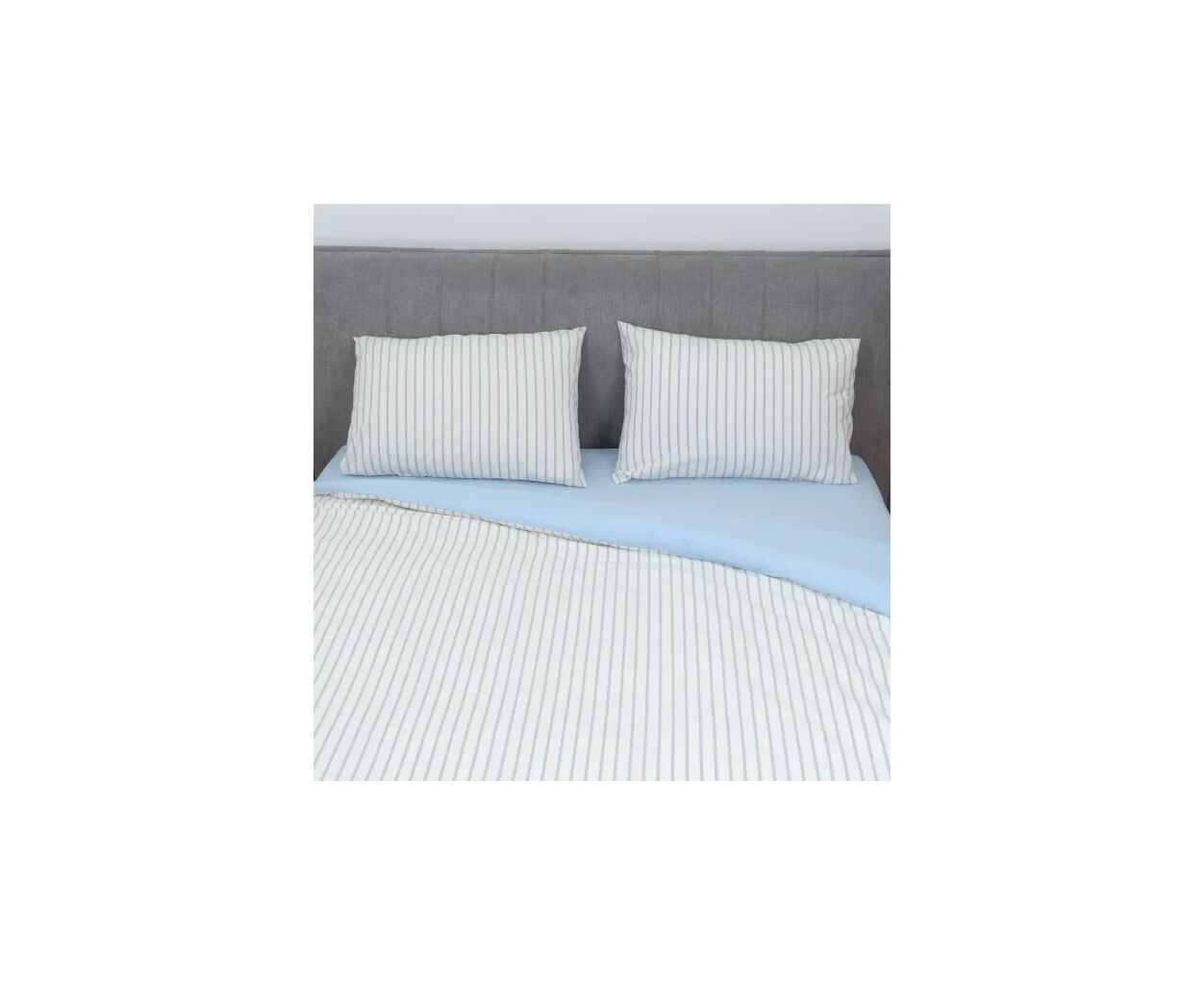 сімейний, Простирадло - 240 х 260 см, Підковдра - 143 х 210 см, Наволочка - 50 х 70 см, варена бавовна, 2 шт., 2 шт., в смужку, фірмова упаковка, на блискавці, блакитний