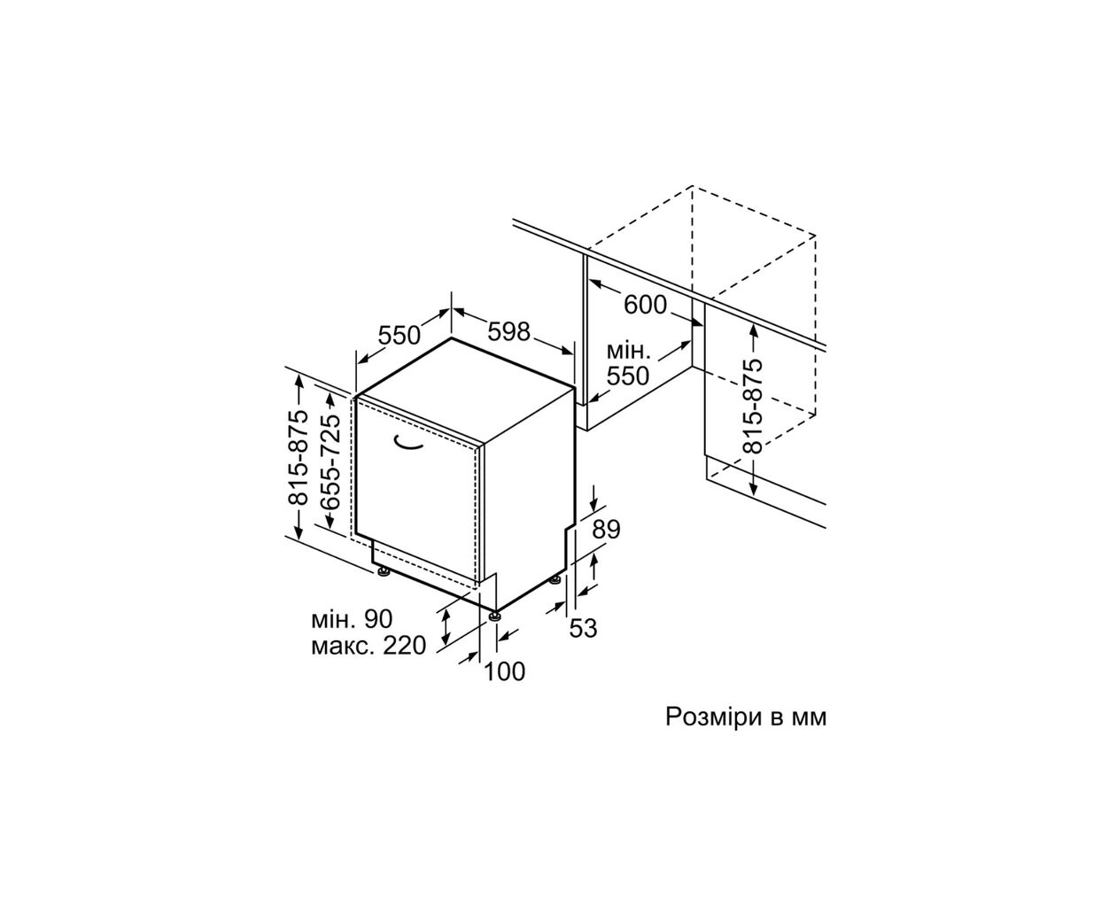 Розміри ніші для вбудовування (ВxШxГ)