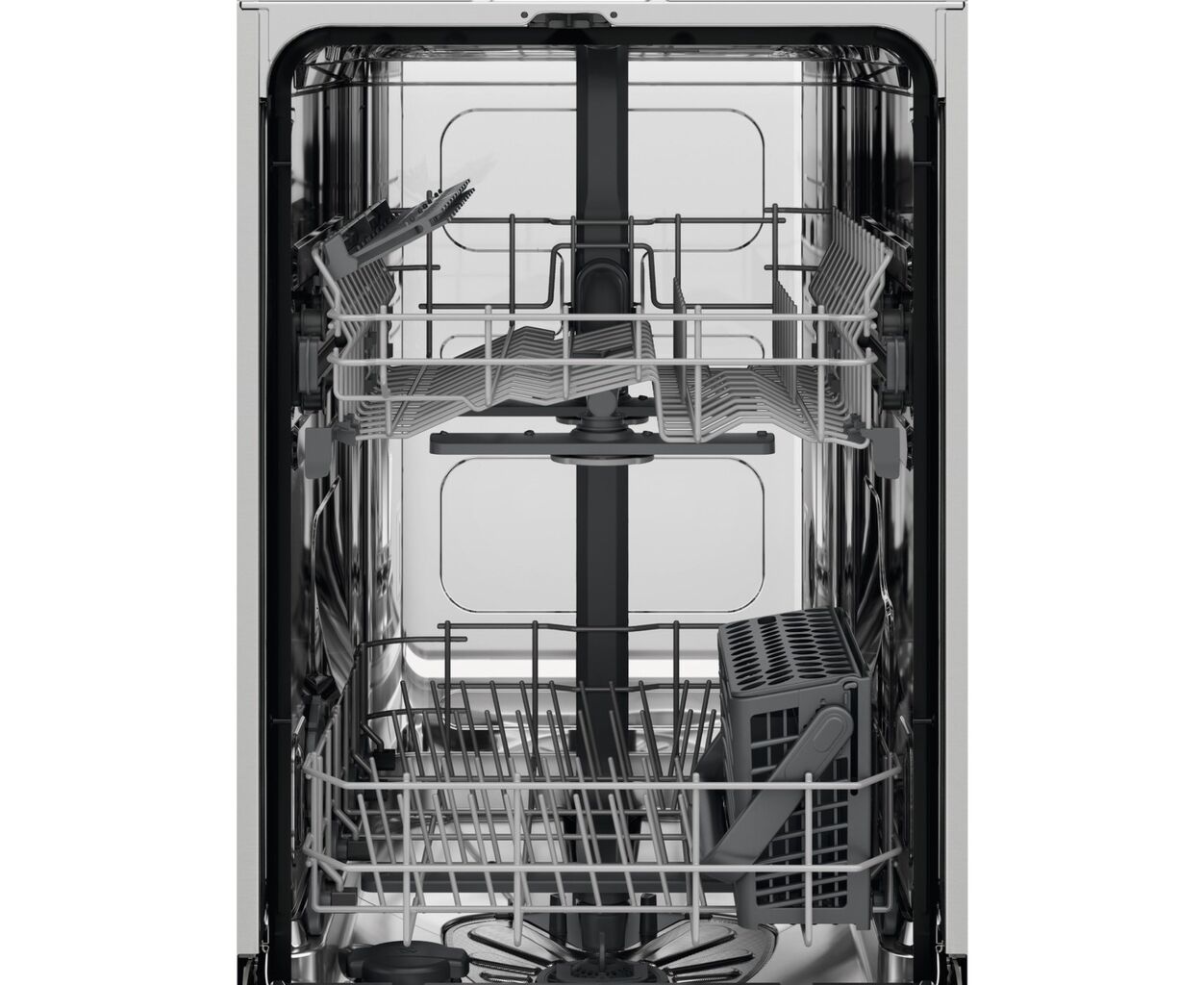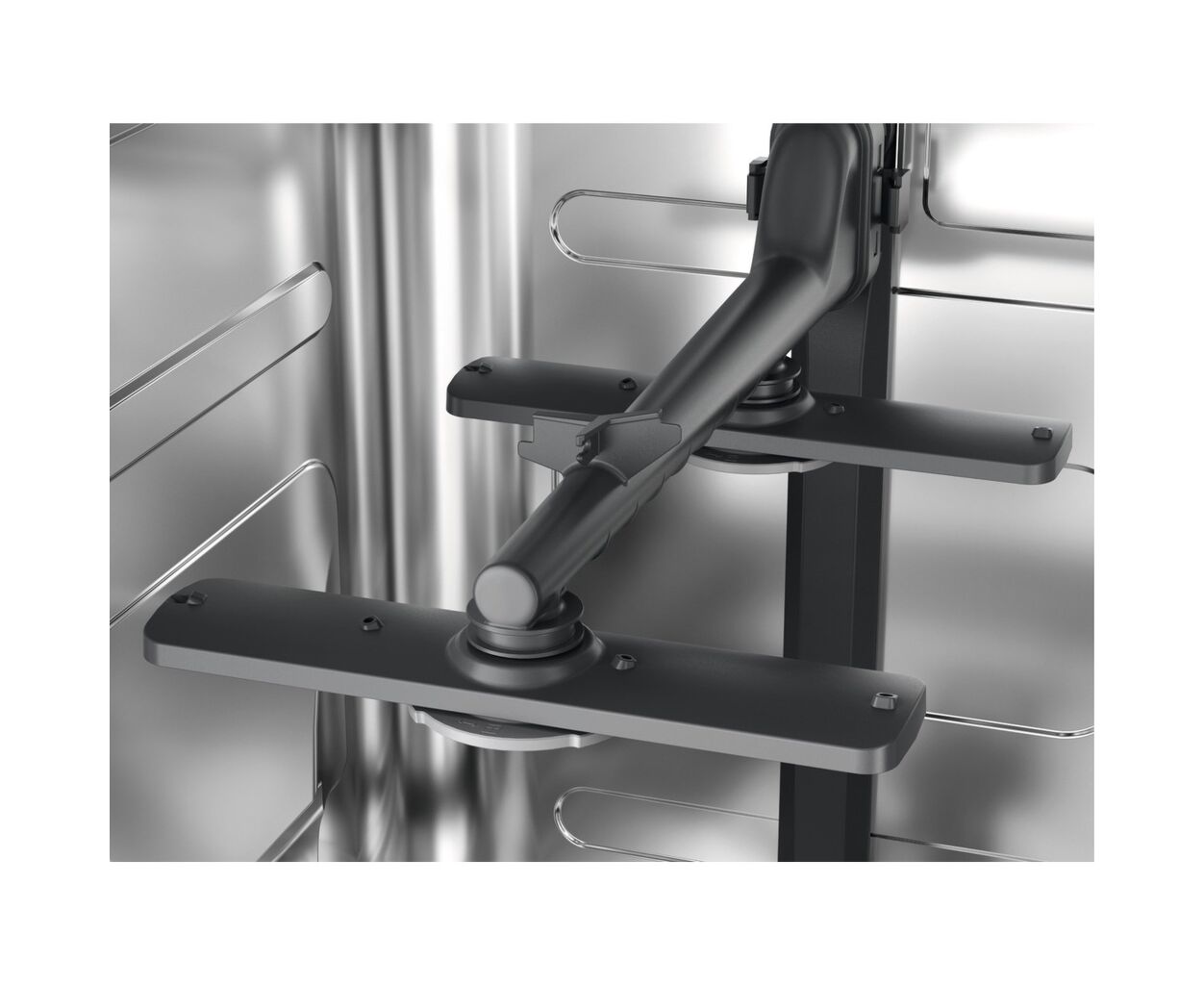 Вода потрапляє на кожну склянку, тарілку та інший посуд завдяки двом розпилювачам, що обертаються. Розпилювачі забезпечують досягнення водою кожного куточка, щоб ваш посуд сяяв чистотою. У верхньому та нижньому кошику.