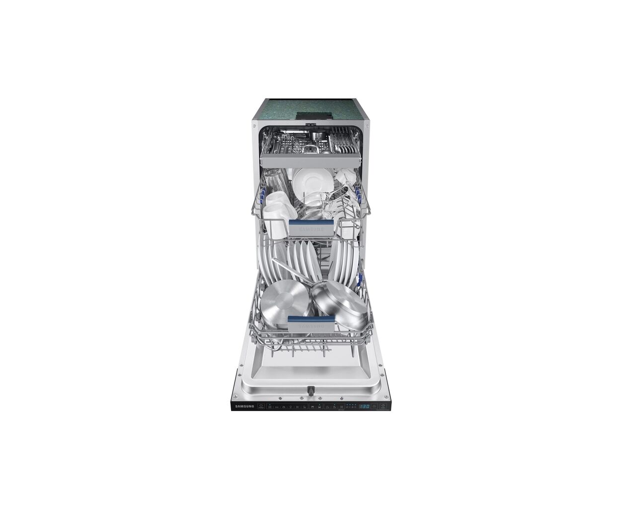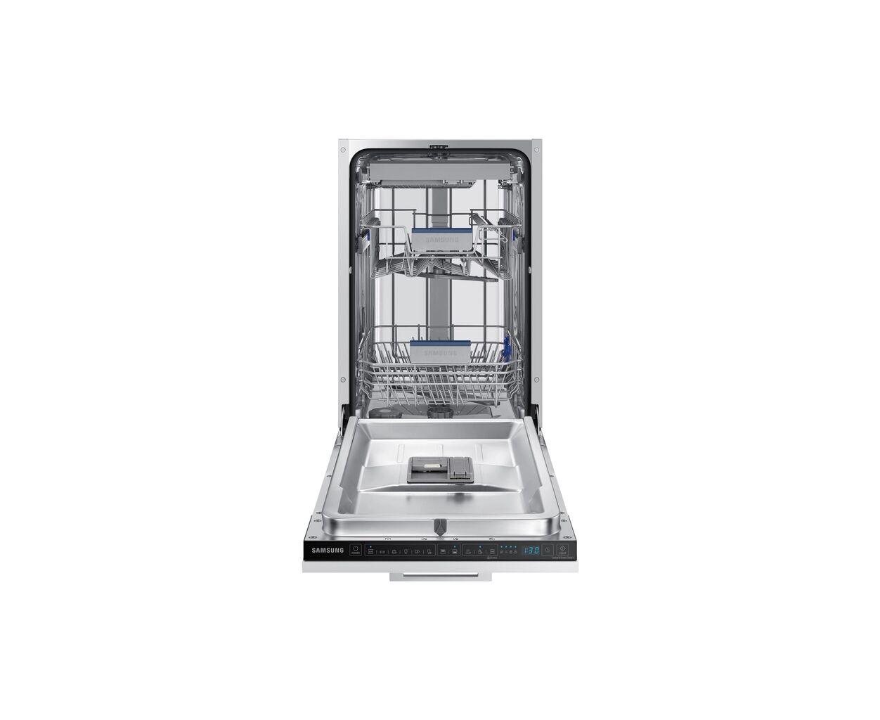 Вбудована посудомийна машина Samsung DW50DG450B00UA — це вузька (45 см) модель, яка поєднує компактність, функціональність і сучасні технології для ефективного миття посуду. Модель вміщує до 10 комплектів посуду та працює тихо — рівень шуму складає 44 дБ, що робить її комфортною для щоденного використання.