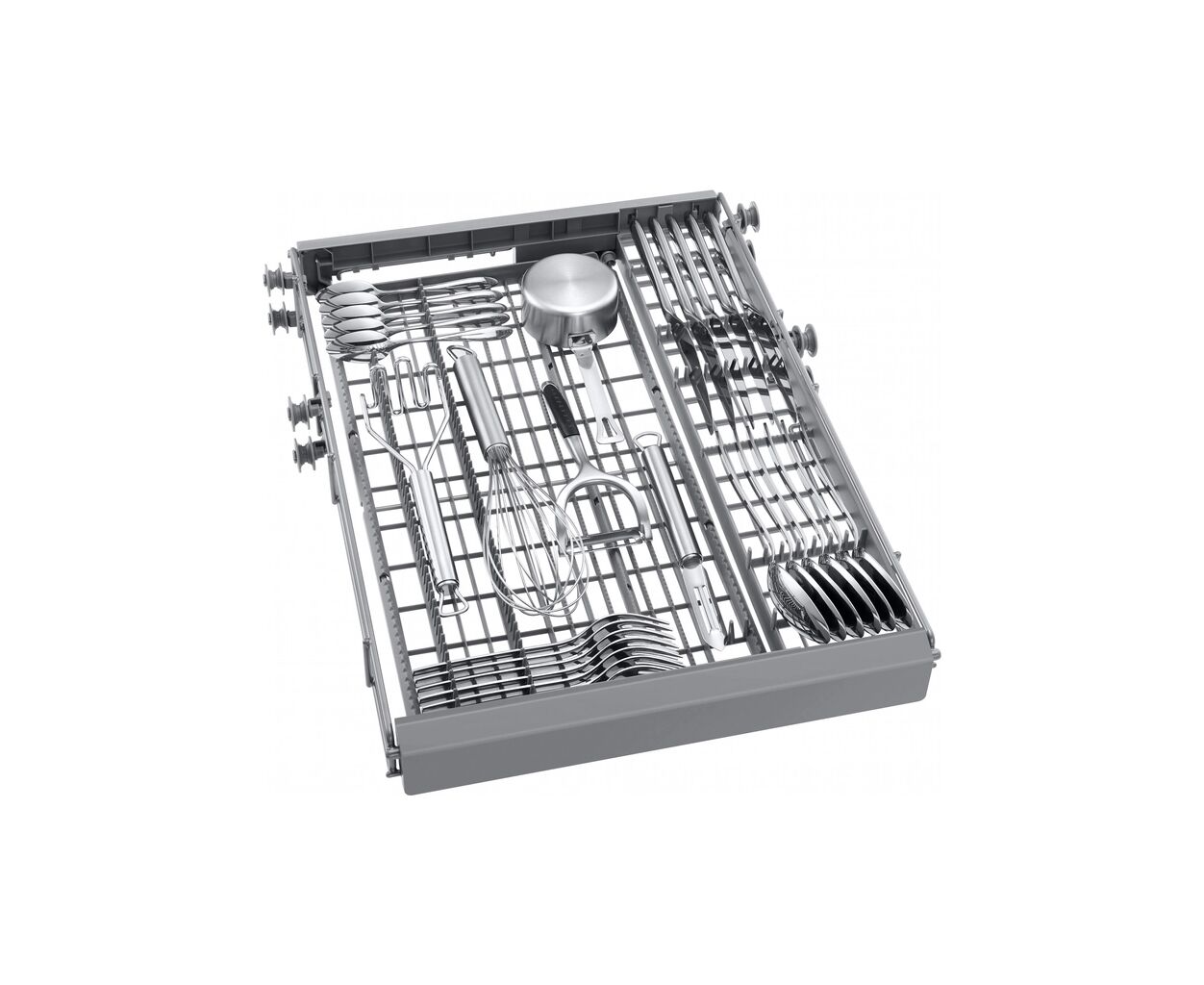 Серед ключових функцій — автоматичне відкриття дверцят після завершення програми, три кошики для зручного розташування посуду, захист від дітей та від протікання, режим половинного завантаження, таймер відстрочки старту та сенсорне керування з LED-індикацією. Машина оснащена шістьма програмами миття та конденсаційною системою сушіння класу A, що забезпечує ідеально сухий посуд.