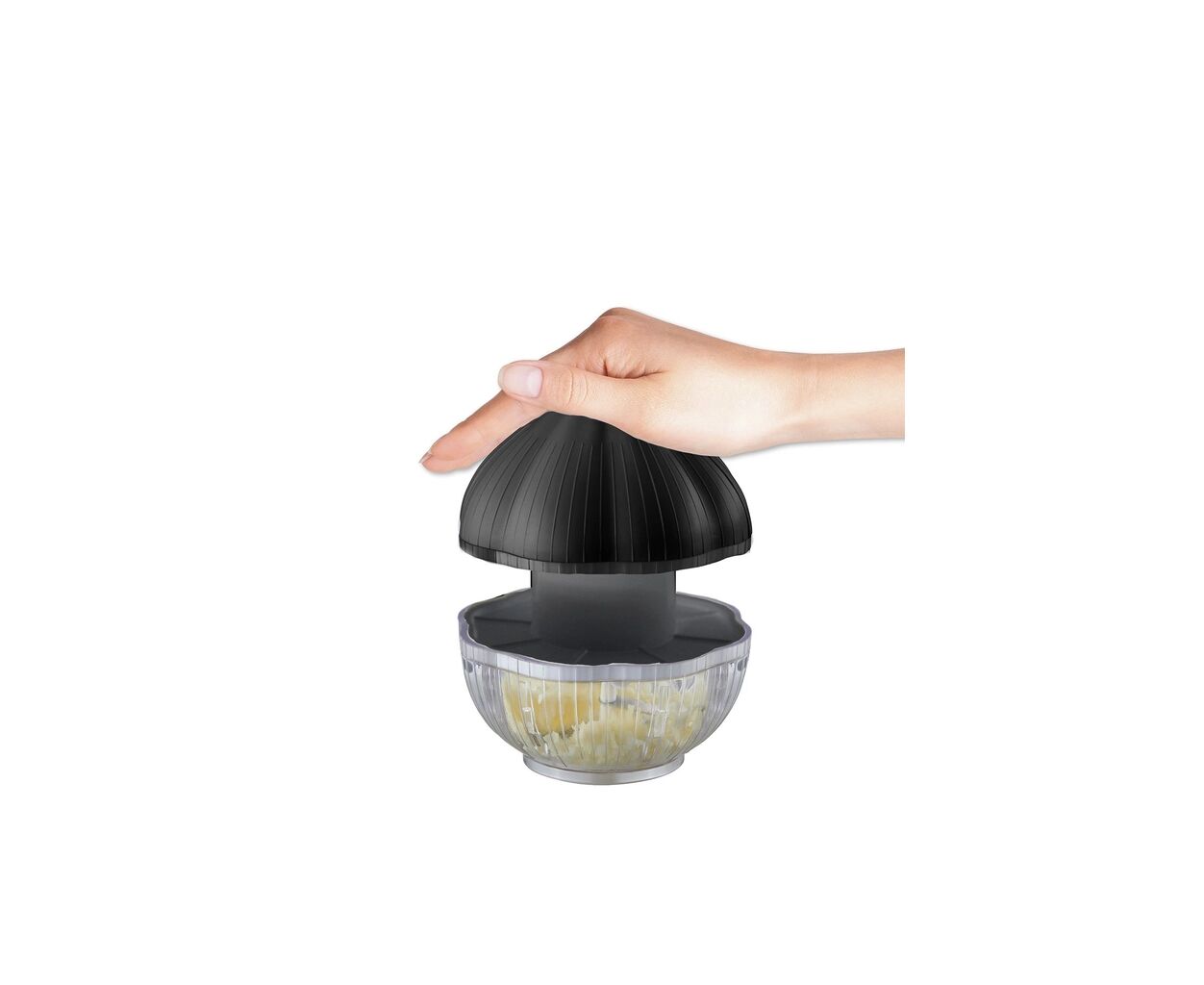 Кілька зубчиків часнику можна миттєво подрібнити за допомогою складної технології тиску - це забезпечується трьома лезами з високоякісної сталі та вбудованим дефлектором.