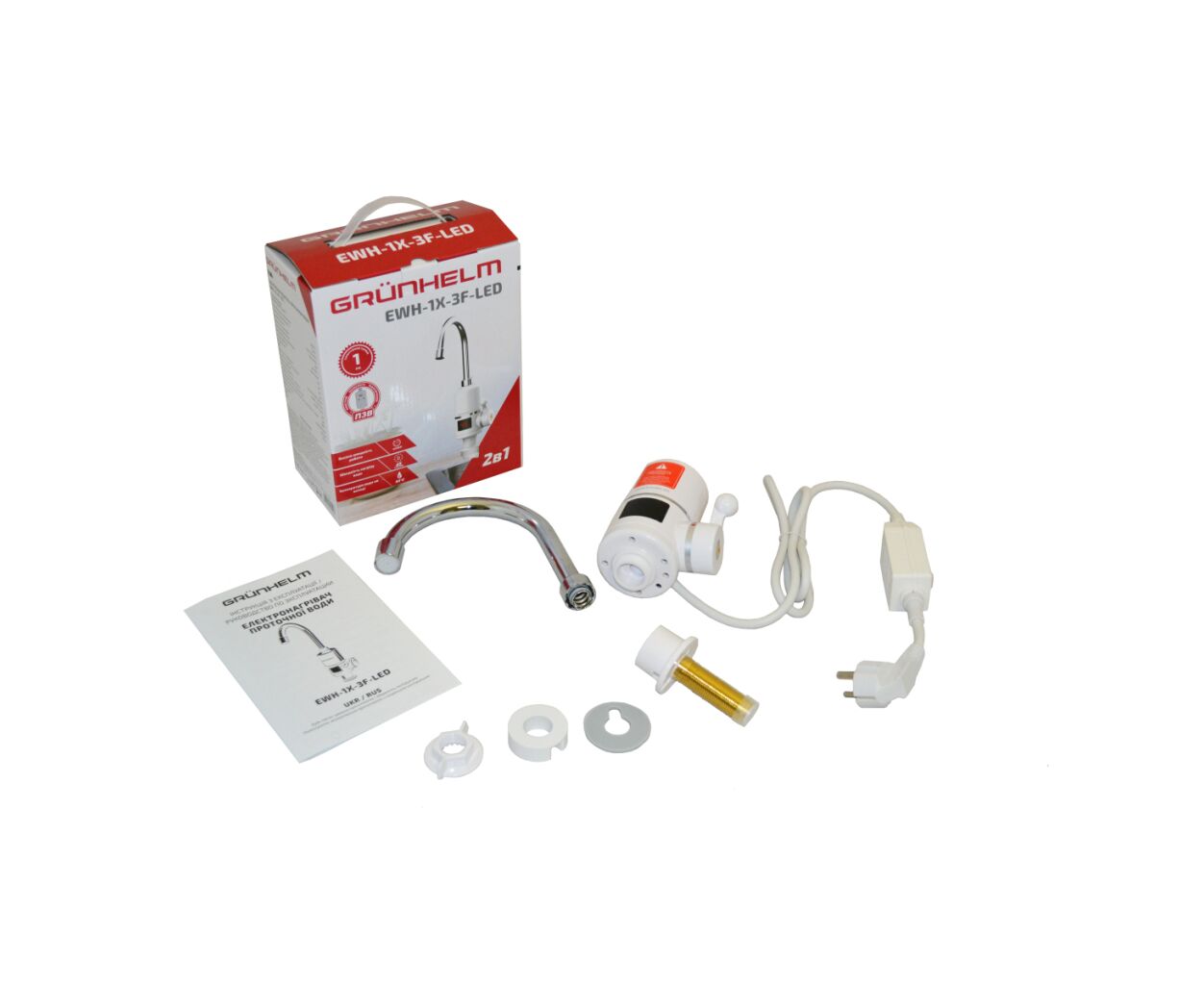 Проточний водонагрівач Grunhelm EWH-1X-3F-LED — це компактний електричний пристрій потужністю 3 кВт, призначений для швидкого нагріву води безпосередньо перед подачею в кран. Він ідеально підходить для використання в умовах, де немає централізованого гарячого водопостачання.