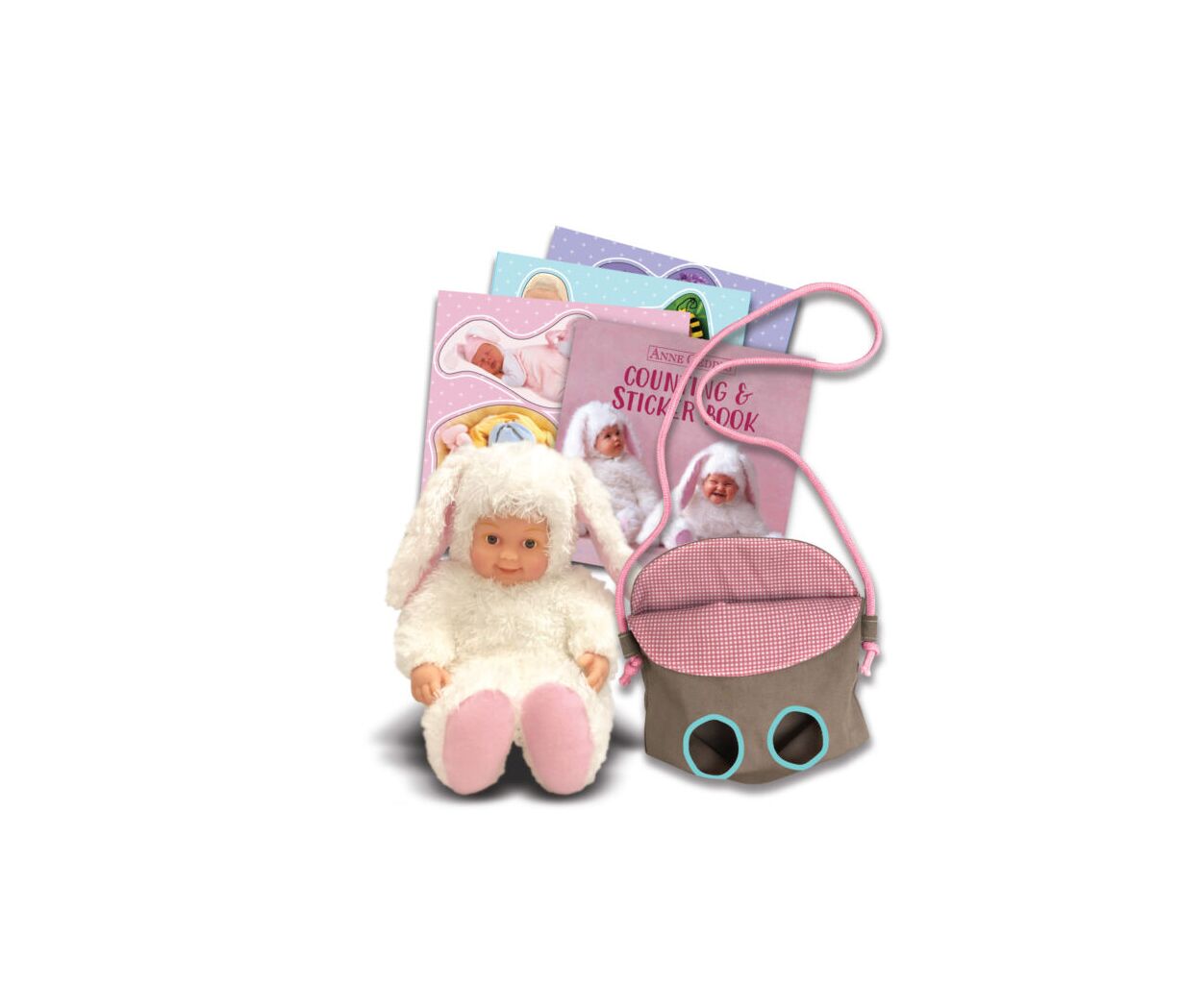 Anne Geddes Лялька “Маленьке Зайченя” з сумкою та стікерами – маленька радість у великій пригоді!