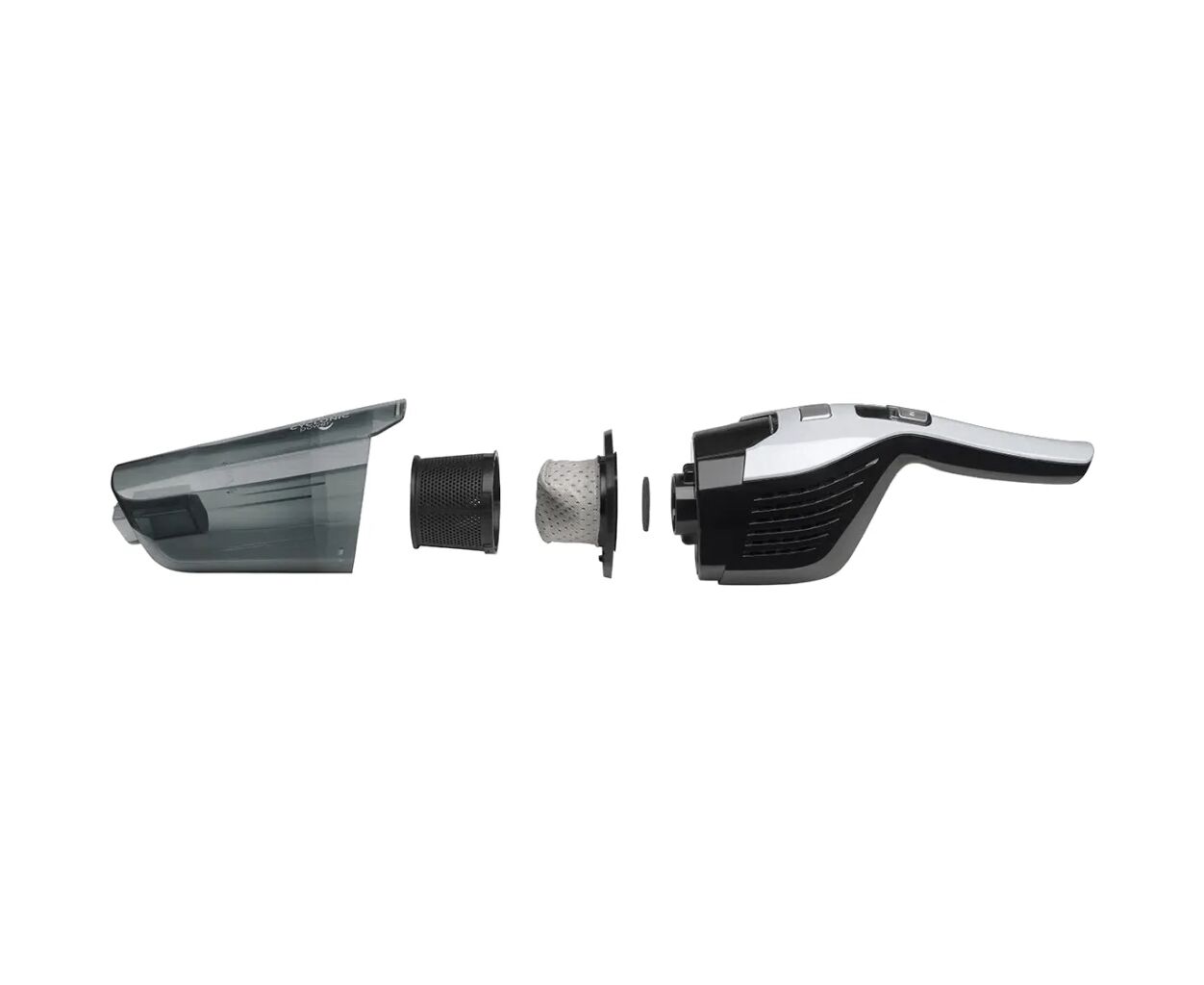 ручний, сухе, вологе, контейнер, циклонна система, на ручці, акумулятор, 90 Вт, Тип фільтра - НЕРА, Ємність пилозбірника - 0.6 л, Ємність водяного баку - 0.15 л, Довжина шнура - бездротовий, 80 дБ, 2.4 кг, Колір - темно-сірий