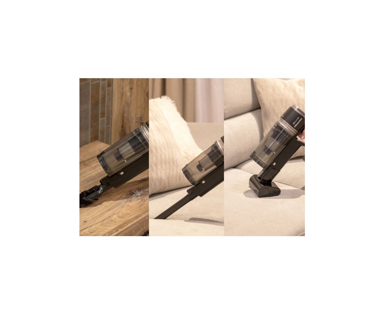 Хороша продуктивність втягування — це один із найважливіших аспектів роботи пилососа, що впливає на його ефективність. Якщо вам потрібно ефективно прибирати сміття, як-от пісок із ворсистого килима або рис із підлоги, покритої кахелем, Hisense Hi·Move IV зробить це без особливих зусиль. Потужний літій-іонний акумулятор 25,2 В і функція інверторної технології переконають вас у цьому.