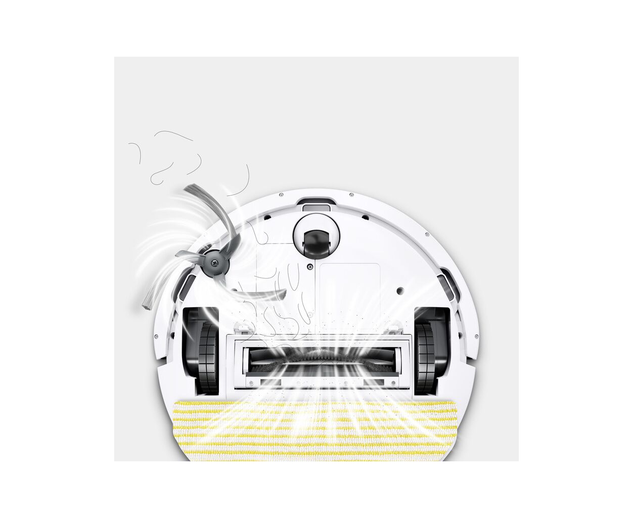 Завдяки високій силі всмоктування 15 000 Па ефективно видаляється більшість видів забруднень — навіть перець, арахіс або пластівці. Для кожного завдання прибирання можна обрати один із чотирьох різних режимів всмоктування. Комбіноване прибирання з використанням основної та бокової щіток забезпечує особливо ефективне очищення підлоги по всьому дому.