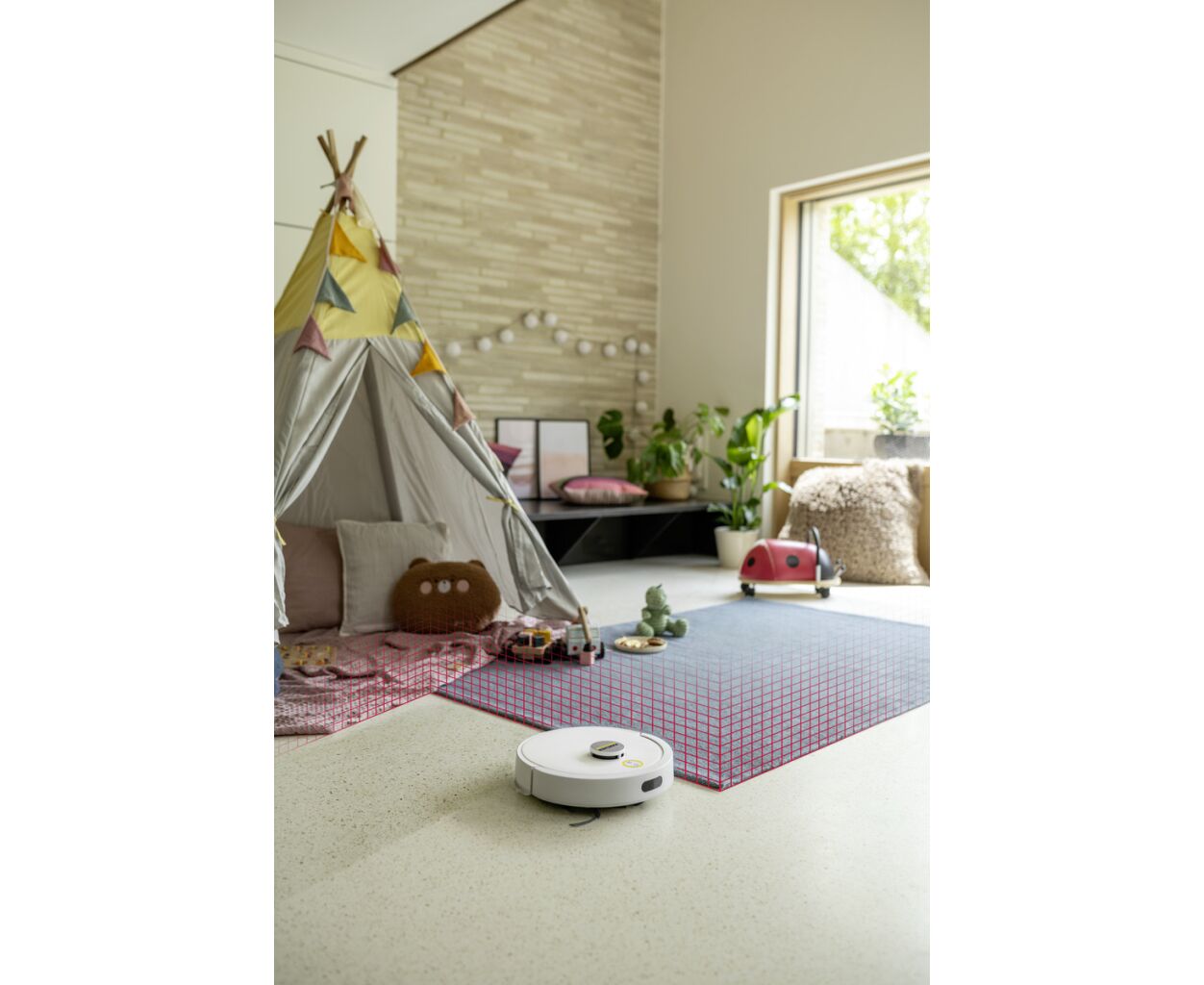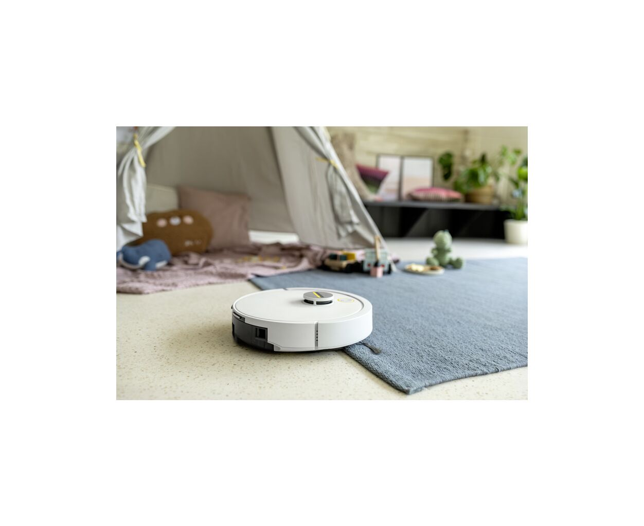 Розумний робот-пилосос Kärcher RVC 3 створений для того, щоб спростити щоденне прибирання вдома. Він самостійно та систематично очищає тверді підлогові покриття і килими з низьким ворсом, надійно збираючи сухий бруд у вбудований пилозбірник за допомогою основної та бокових щіток і потужного всмоктування. За потреби RVC 3 може виконувати не лише сухе, а й легке вологе прибирання, допомагаючи ефективніше зв’язувати пил і підтримувати чистоту підлоги. Робот орієнтується в просторі за допомогою технології LiDAR, автоматично створює карту приміщень і дає змогу задати індивідуальні налаштування прибирання для кожної кімнати — обрати сухий або вологий режим чи повністю виключити окремі зони. У разі зниження рівня заряду акумулятора RVC 3 автоматично прямує до зарядної станції для підзарядки. Після завершення прибирання робот самостійно повертається на базу. Додаткові датчики захищають пристрій від падінь, зокрема зі сходів, а запуск і керування можливі через застосунок (App Control), за індивідуальним розкладом або натисканням кнопки на корпусі, при цьому за потреби робот повідомляє про свій стан за допомогою голосових повідомлень (Voice Output).