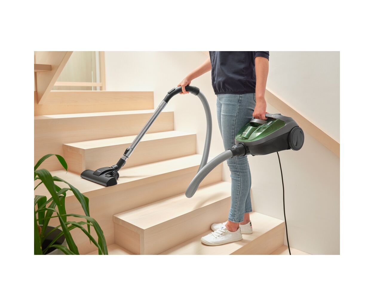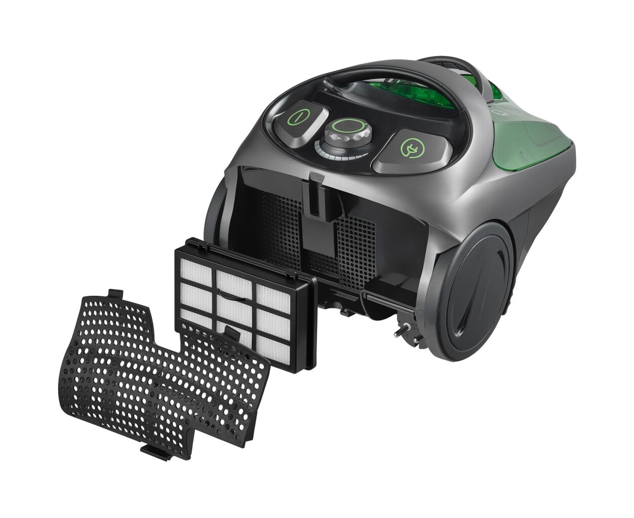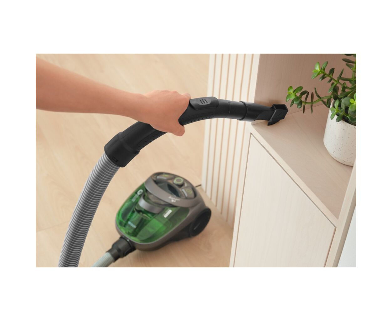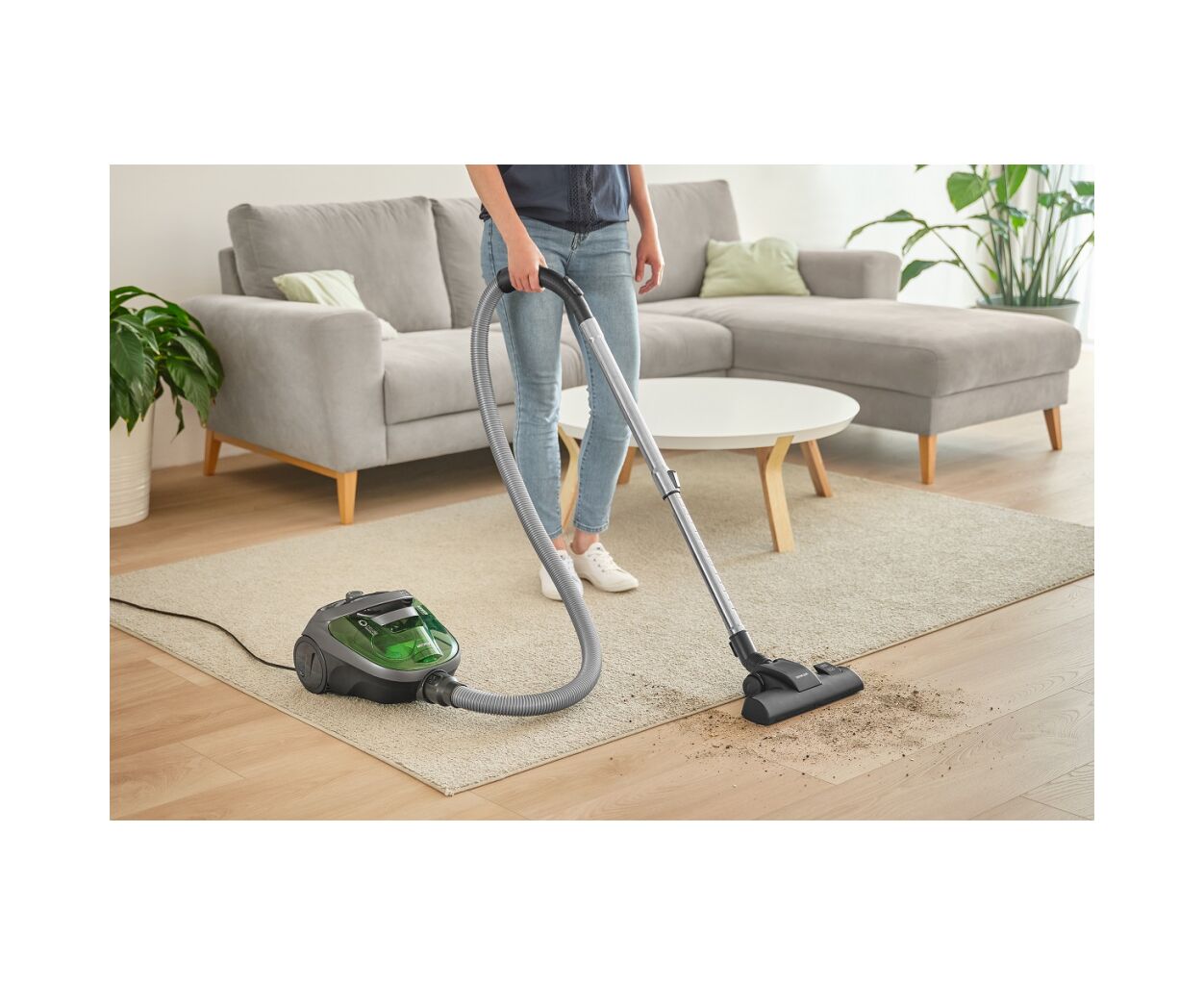 Циклонна фільтрація забезпечує постійну потужність всмоктування протягом усього процесу прибирання, а завдяки ефективним фільтрам – ідеальну фільтрацію та ефективне вловлювання навіть найдрібніших частинок пилу. Тому пилосос підходить для алергіків і людей з підвищеною чутливістю до пилу. Технологія без мішка для прибирання пилу береже ваш гаманець і навколишнє середовище. Пилозбірник об'ємом 1,5 л повністю миється та легко підтримується в гігієнічній чистоті.