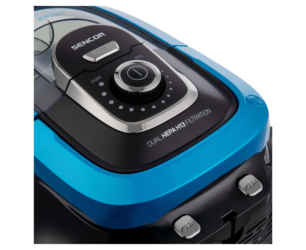 SENCOR SVC 1035TQ підходить для чищення будь-яких типів підлог. Призначення мʼяких прогумованих коліс - запобігти пошкодженню твердих підлогових покриттів. Пилосос оснащений фільтром HEPA і HEPA H13.
