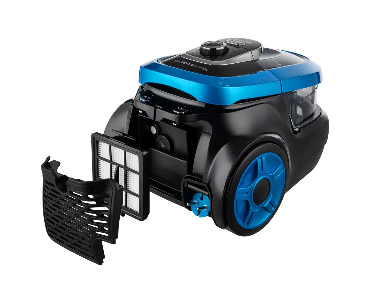 класичний, сухе, контейнер, на корпусі, від мережі, 750 Вт, Тип фільтра - НЕРА, Ємність пилозбірника - 1 л, Довжина шнура - 7 м, 75 дБ, 38 x 28 x 25.5 см, 4.75 кг, Колір - синьо-чорний