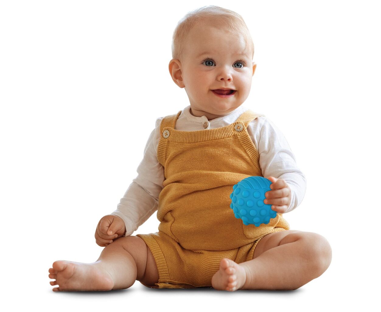 м'яч, від 6 місяців, координація руху, дрібна моторика, колірне сприйняття, тактильне сприйняття, візуальне сприйняття, сенсорика, Колір - різнокольоровий