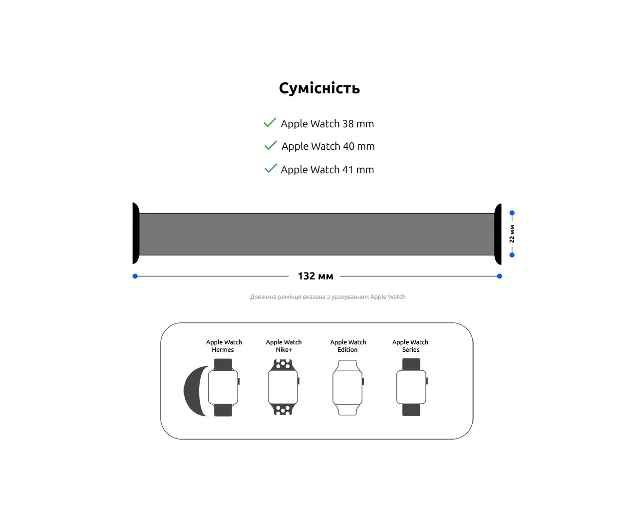 Характеристики Ремінець до смарт-годинника Armorstandart Braided Solo Loop для Apple Watch 42 (Series 11-10)/41/40/38 Charcoal Size 4 (132 mm) (ARM58061)