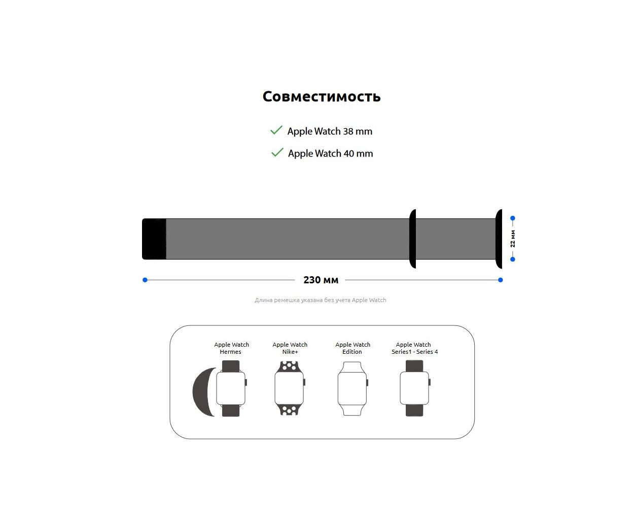 - Ремінець можна комбінувати з будь-яким корпусом Apple Watch відповідного розміру.