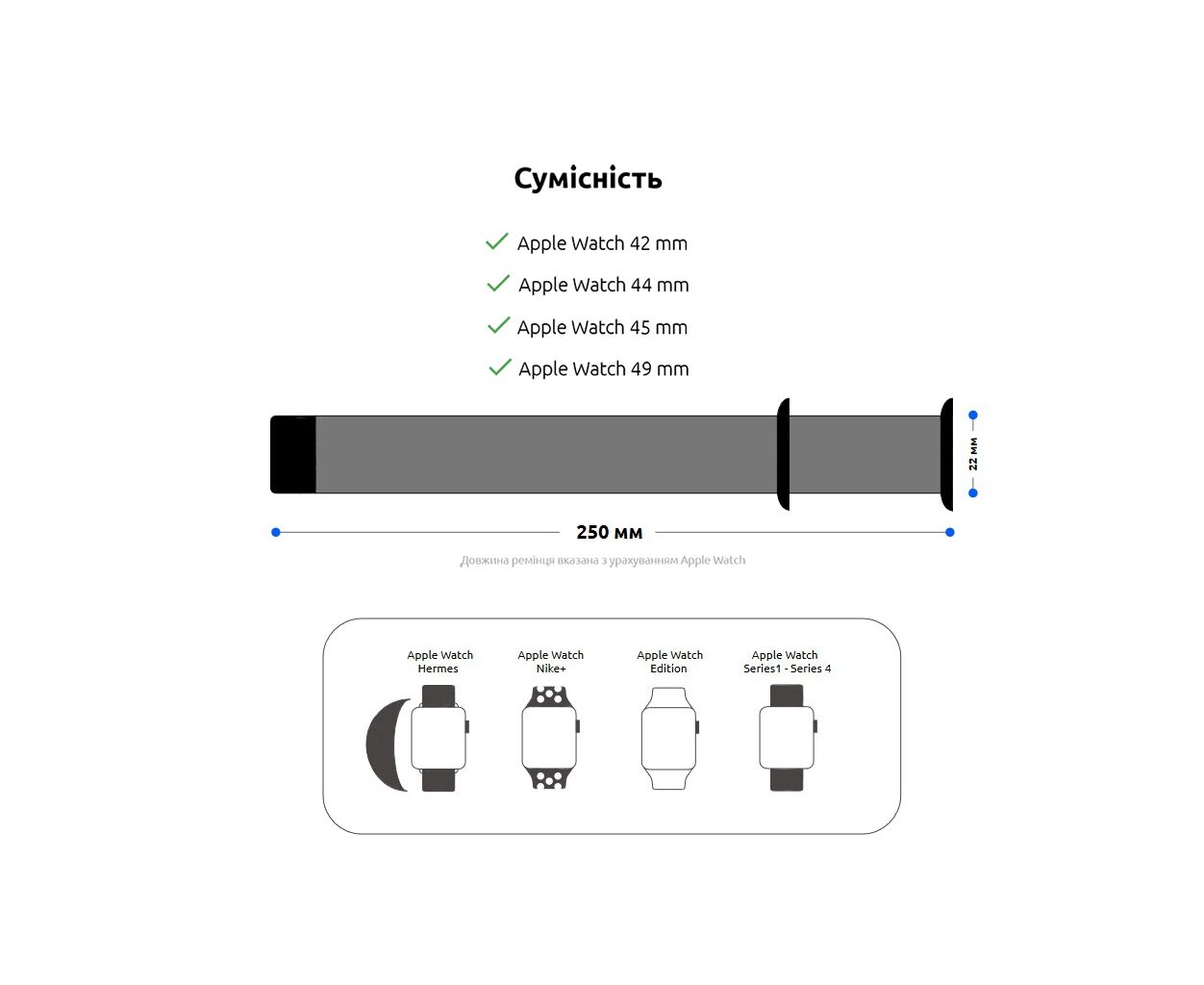 • Ремінець можна комбінувати з будь-яким корпусом Apple Watch відповідного розміру.