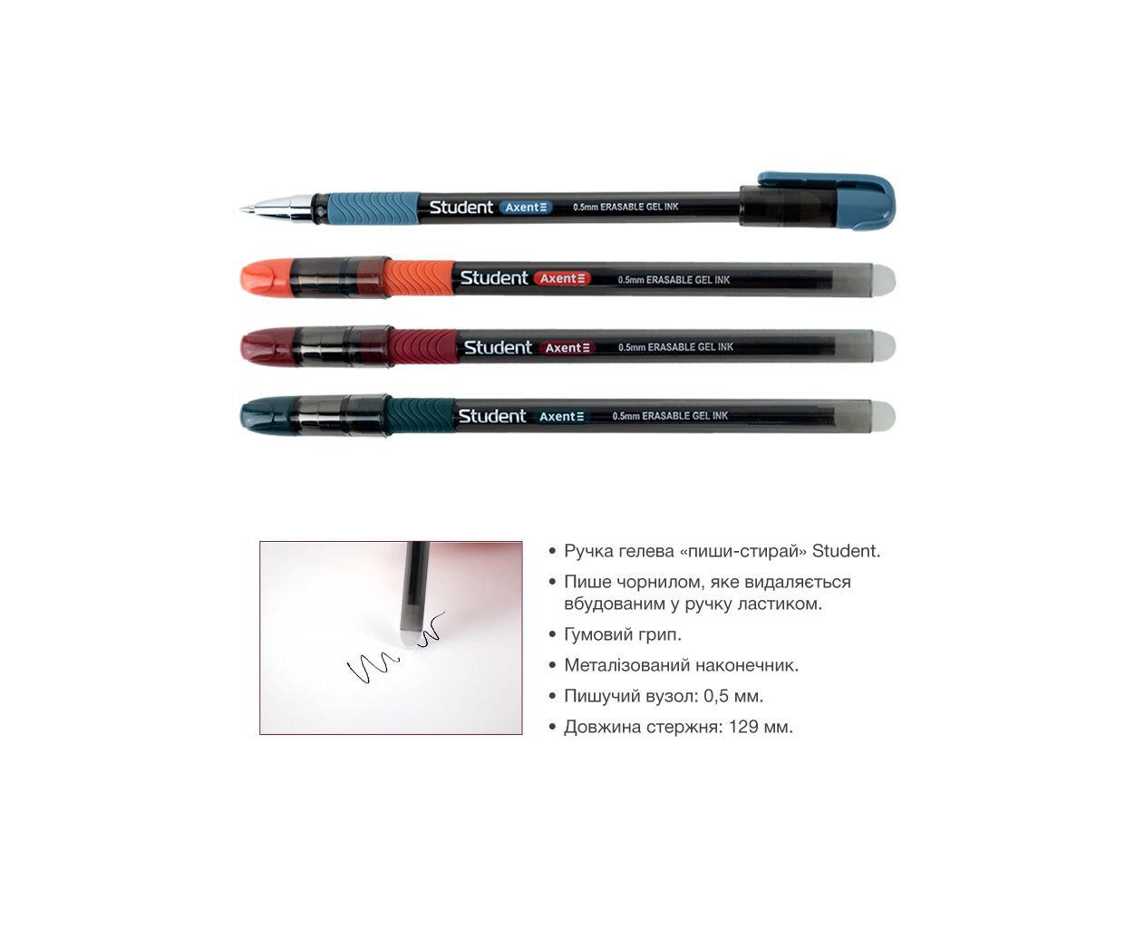 Опис Ручка гелева Axent пиши-стирай Student, чорна в асортименті (AG1071-01-A)