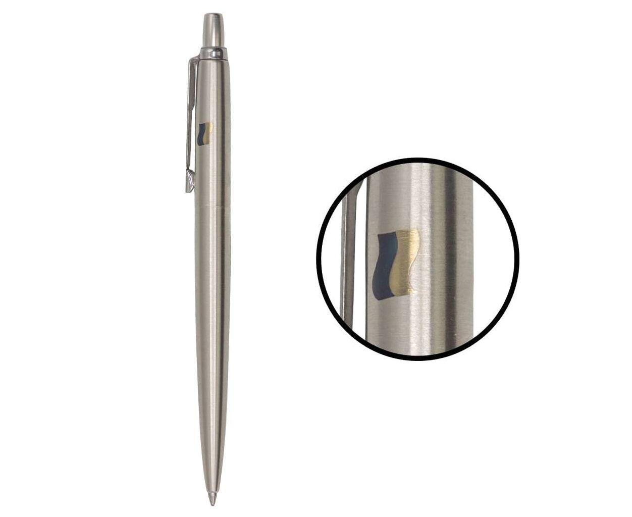 Оригінальна кулькова ручка Parker JOTTER Stainless Steel CT BP з кольоровим гравіюванням Державного Прапора України. Сталева ручка зі сталевим характером. Прекрасний подарунок для гордих та волелюбних українців та всіх, хто захищає незалежність нашої держави.
