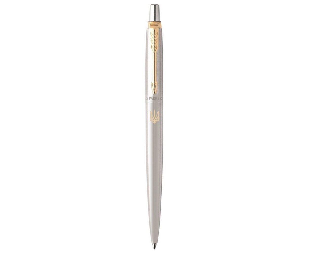 Parker JOTTER Stainless Steel GT BP - Тризуб золотий (полірований сталевий дизайн з гравіюванням та позолотою) - ексклюзивна кулькова ручка з лінійки культових інструментів JOTTER (Джотер). Оригінальна ручка доповнена лазерним гравіюванням Герба України золотого кольору.