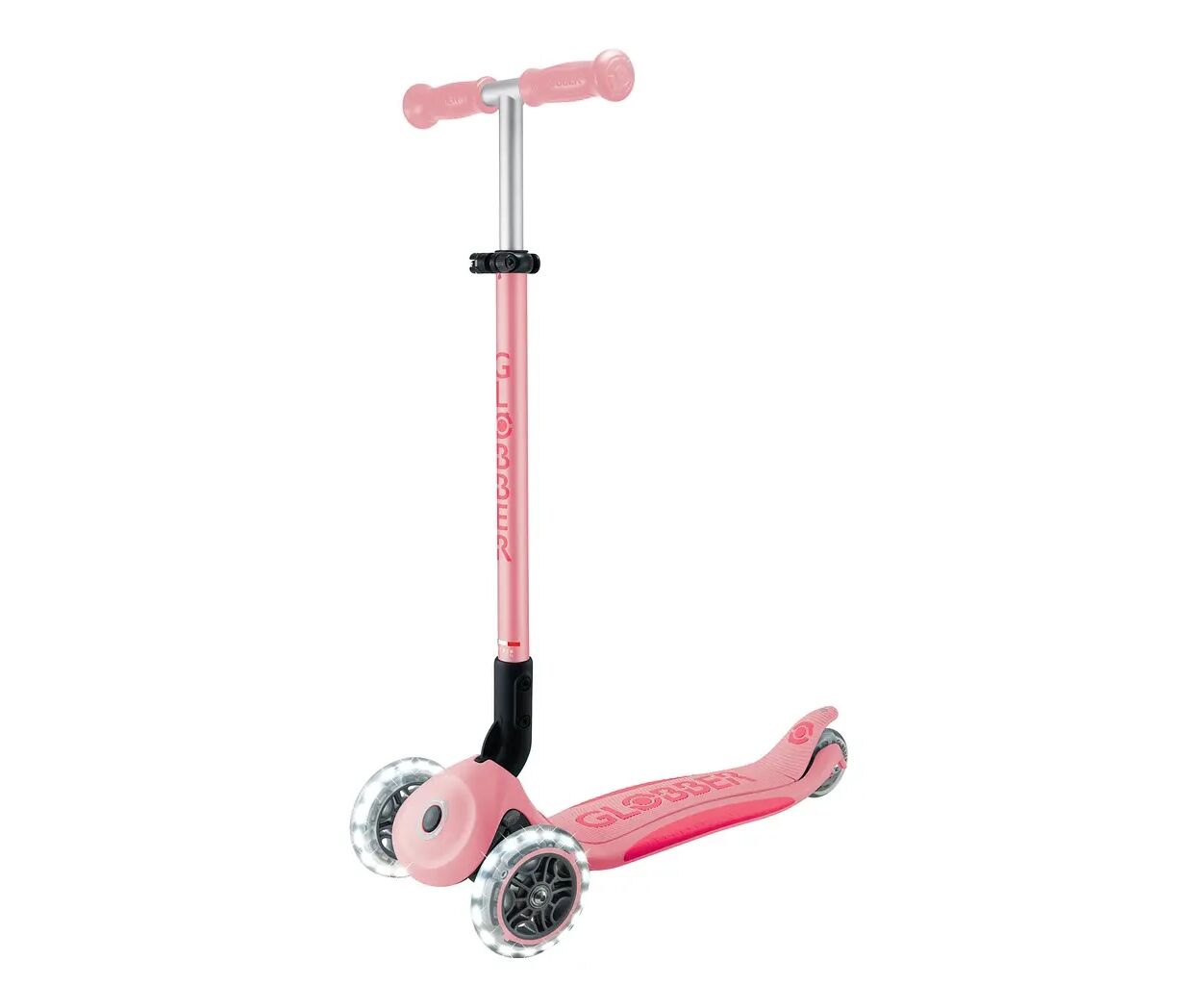 Опис Самокат Globber серії Elite Lights пастельно-рожевий Колеса з підсвічуванням (439-710-3)