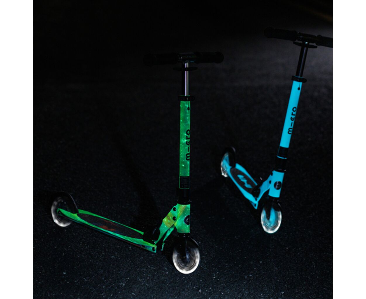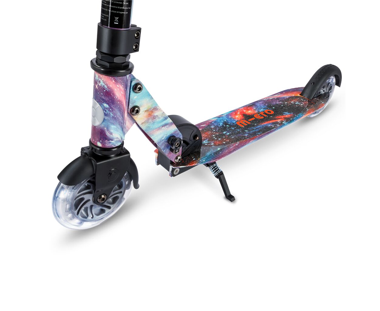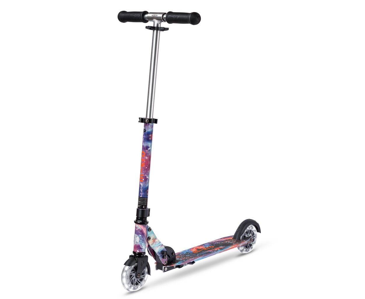 Самокат MICRO серії "Sprite Glow LED Art Collection" - КОСМОС - досконалий та міцний двоколісний самокат. Він оснащений колесами, що світяться, та складною рамою.