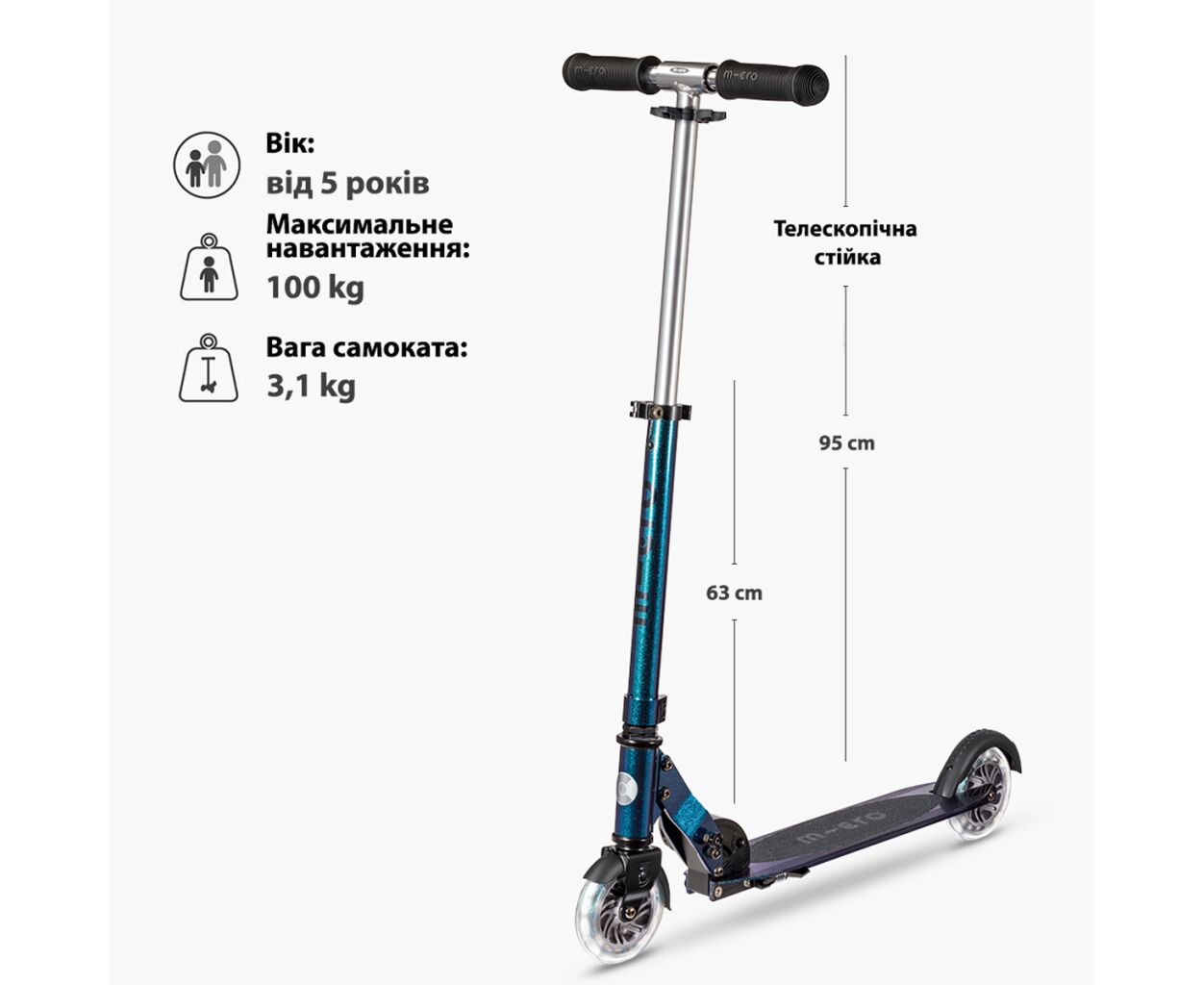 Характеристики Самокат Micro Sprite LED" Перламутровий мікс" (SA0294)