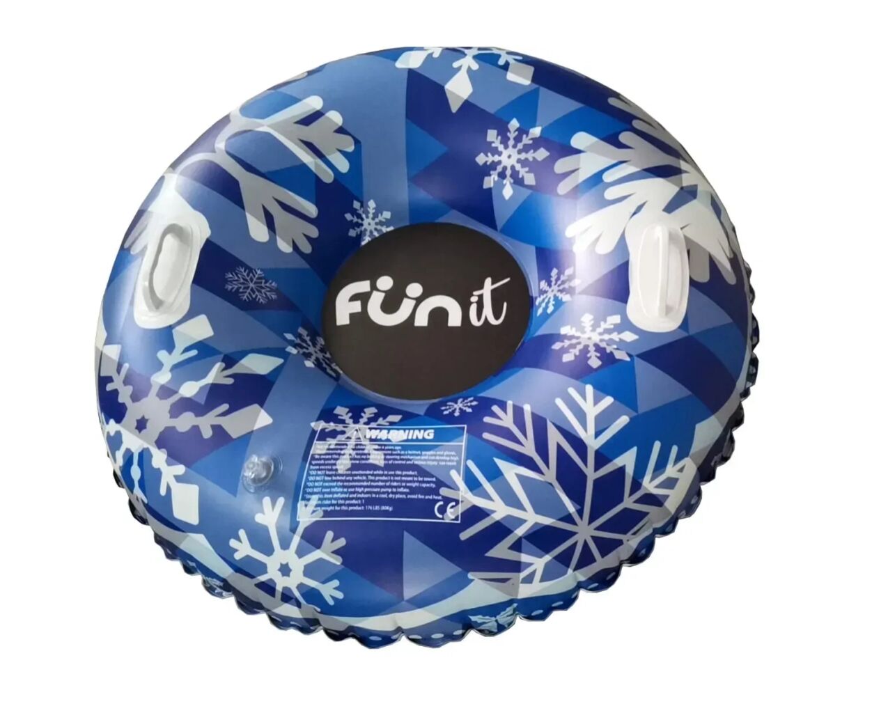 Тип - санки надувні, рекомендований вік - від 6 років, кількість місць - 1, Матеріал - ПВХ, максимальне навантаження - 80 кг, оснащення - ручки, вага - 1 кг, синій, білий