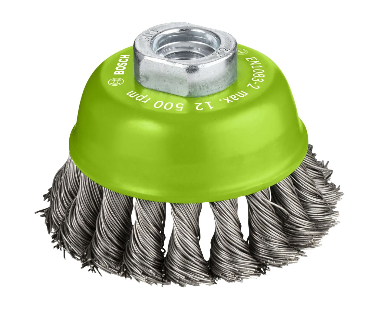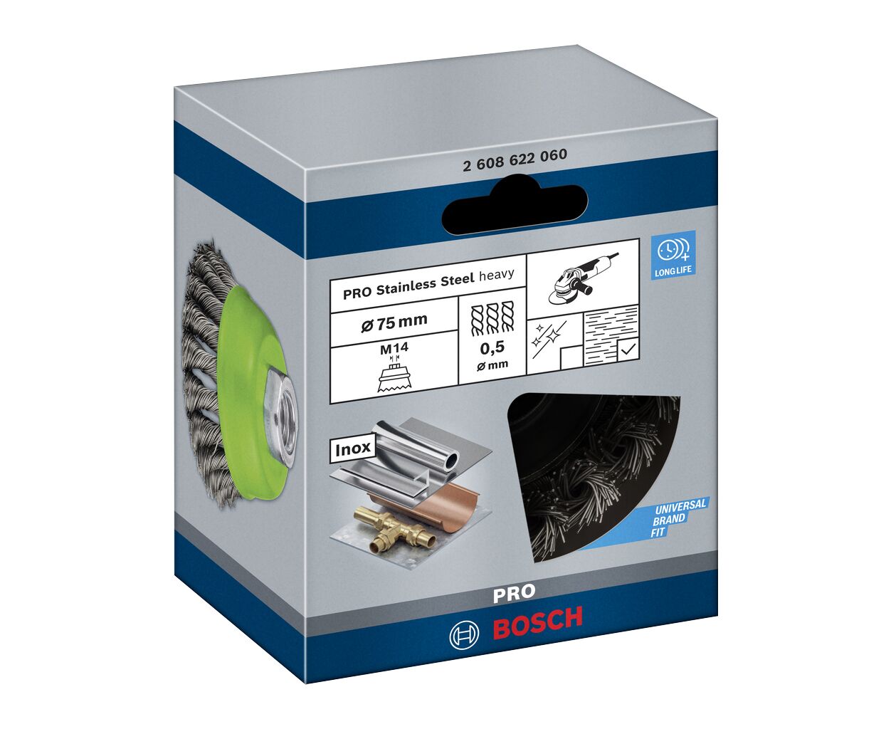 Опис Щітка для електроінструменту Bosch Professional чашкова, нержавіюча 75мм, 0.5мм, M14 (2.608.622.060)