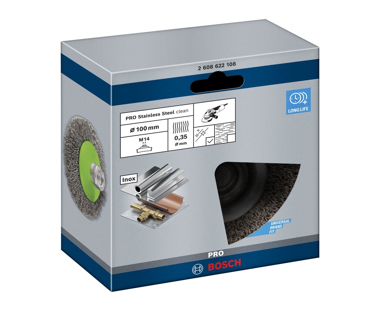 Характеристики Щітка для електроінструменту Einhell Professional нержавіюча 100мм 0.35мм M14 (2.608.622.108)