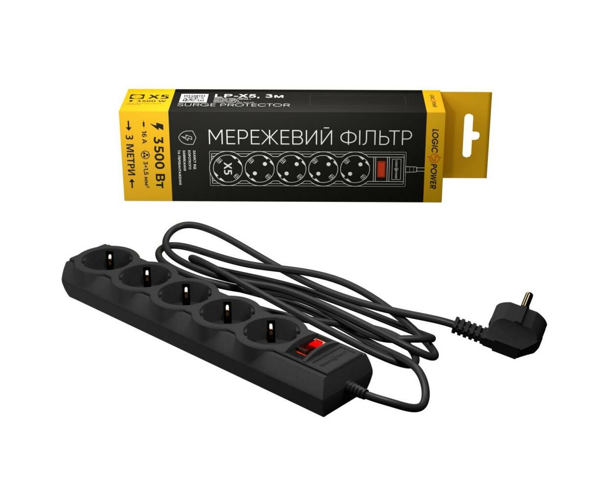 Мережевий фільтр живлення LogicPower LP-X5 PREMIUM, 3m black (9584)