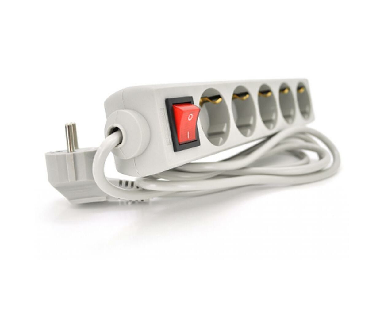 Кількість розеток - 5, Довжина кабелю - 1.8 м, заземлюючий контакт, із загальним вимикачем, Колір - світло-сірий