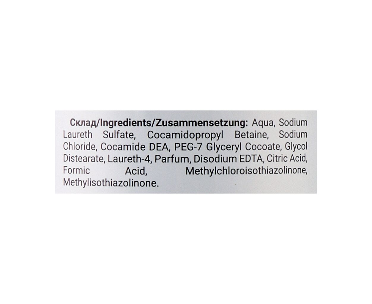- Aqua, Sodium Laureth Sulfate, Cocamidopropyl Betaine, Sodium Chloride, Cocamide DEA, PEG-7 Glyceryl Cocoate, Glycol Distearate, Laureth-4, Parfum, Disodium EDTA, Citric Acid, Formic Acid, Methylchloroisothiazolinone, Methylisothiazolinone