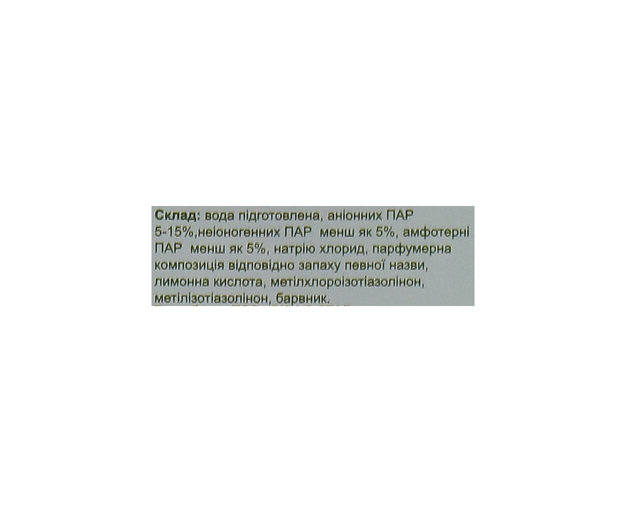 - Prepared water, anionic surfactants 5-15%, nonionic surfactants less than 5%, amphoteric surfactants less than 5%, sodium chloride, perfume composition, citric acid, methylchloroisothiazolinone, methylisothiazolinone, dye. TUU 20.4-20021056-019:2019