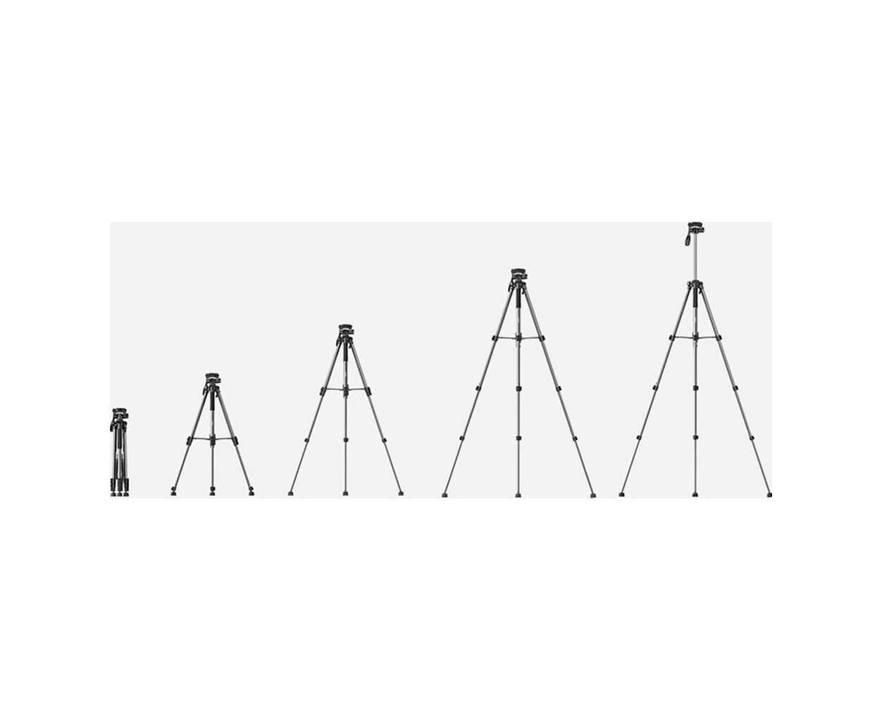 Штатив має 3 секції ніжок, тому ви можете регулювати висоту штатива для різних сценаріїв. Висоту можна збільшити з 53.5 до 175 см. Середню колону можна відрегулювати на максимальну висоту 31.4 см.