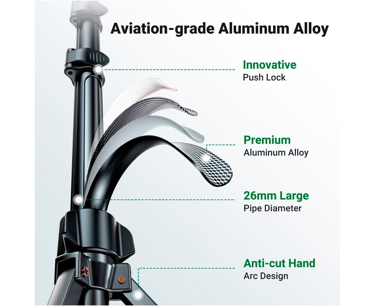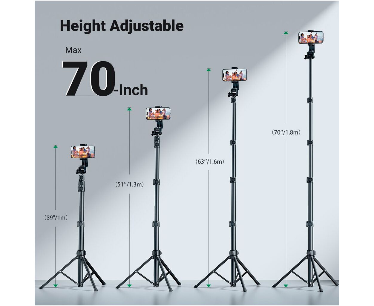 Штатив для телефону UGREEN регулюється по висоті в діапазоні від 58 до 166 см і ідеально підходить для стрімінгу в реальному часі, запису відео та фотографування.