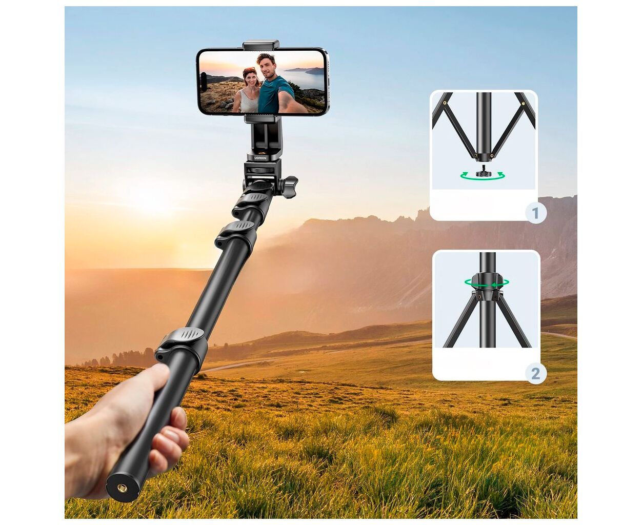 Характеристики Штатив Ugreen LP680 Selfie Stick Tripod with Bluetooth Remote Black (15609)