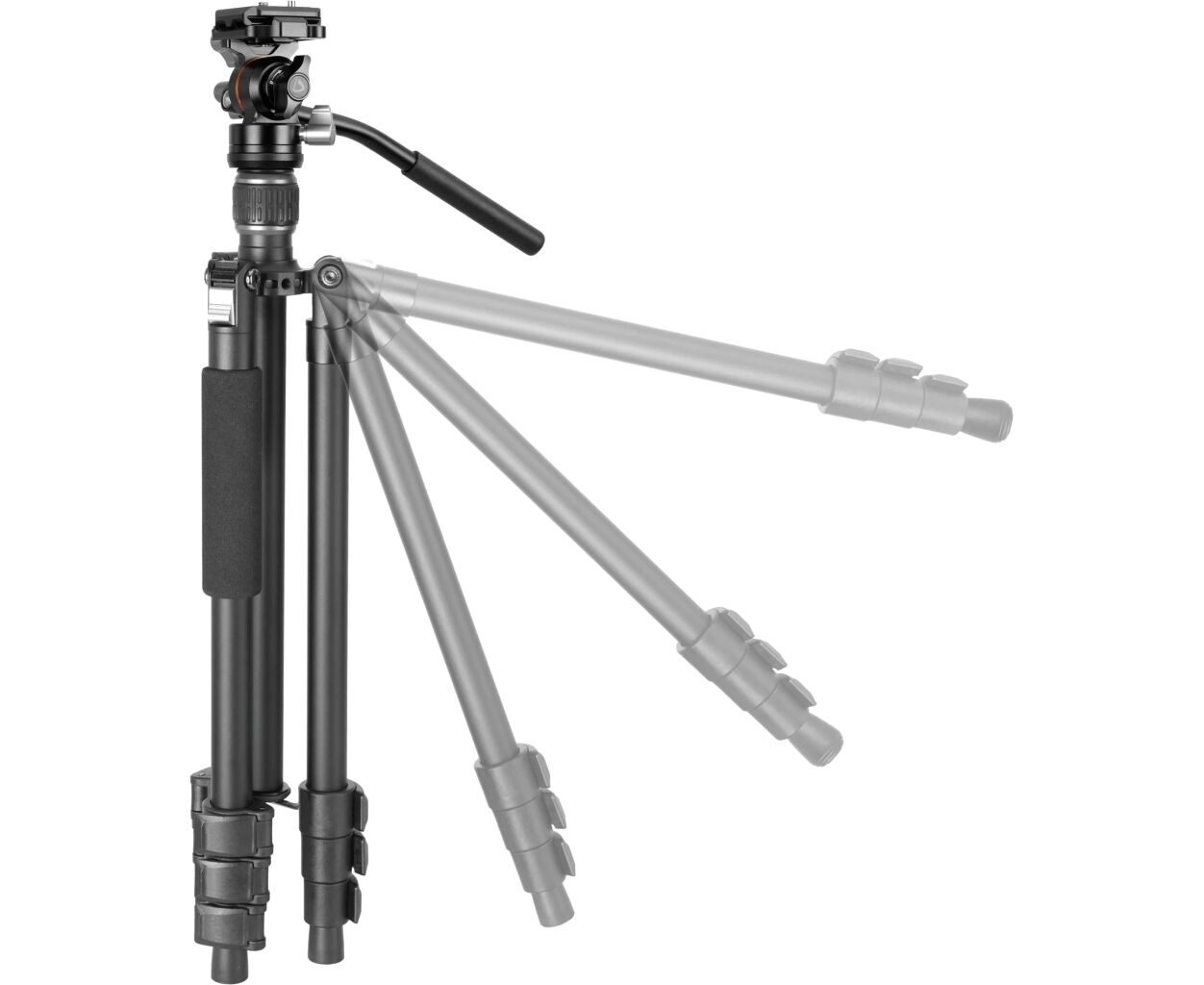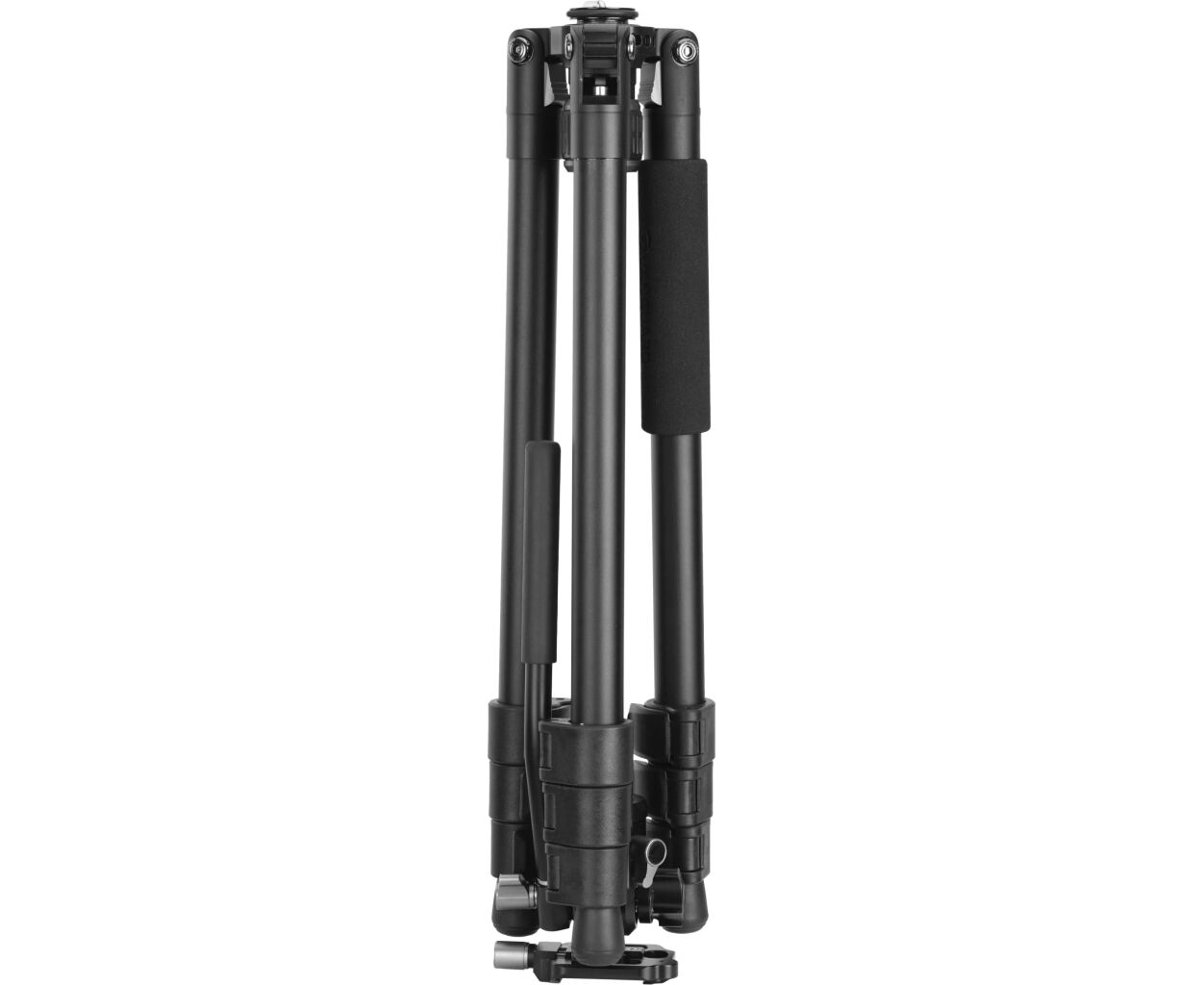 Конструкція штатива виконана з високоякісного та легкого алюмінієвого сплаву, що забезпечує оптимальний баланс між міцністю та портативністю. Попри власну вагу всього 1.67 кг, трипод здатний витримувати максимальне рекомендоване навантаження до 5 кг. Цього більш ніж достатньо для сучасних бездзеркальних камер, дзеркальних фотоапаратів з відеофункцією та навіть компактних відеокамер з додатковими аксесуарами. Штатив надійно стоїть на будь-якій поверхні завдяки якісним гумовим ніжкам, які запобігають ковзанню та захищають делікатні підлоги від подряпин. Це робить його універсальним рішенням як для студійної роботи, так і для непередбачуваних умов знімання на природі.