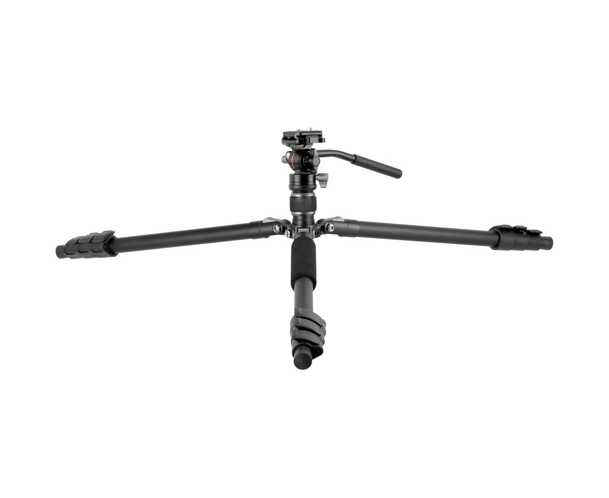 Ніжки штатива складаються з чотирьох секцій, виготовлених з міцного алюмінію, з максимальним діаметром 26 мм, це забезпечує надійну опору для вашого обладнання. Перевірена часом система фіксації Flip (кліпси) дозволяє розкладати та складати штатив за лічені секунди, не відволікаючись від творчого процесу. Модель має можливість незалежного регулювання кутів ніжок у трьох фіксованих положеннях: 20, 50 та 80 градусів. Це відкриває можливість для знімання з низьких ракурсів або стабільної установки на складній, нерівній поверхні. Центральна колона оснащена вбудованою короткою колоною (адаптером для низьких кутів), що дозволяє опускати камеру практично до рівня землі. Для додаткової стабільності в вітряну погоду передбачений пружинний гачок для підвішування вантажу, а інтегрований бульбашковий рівень допомагає ідеально вирівняти горизонт.