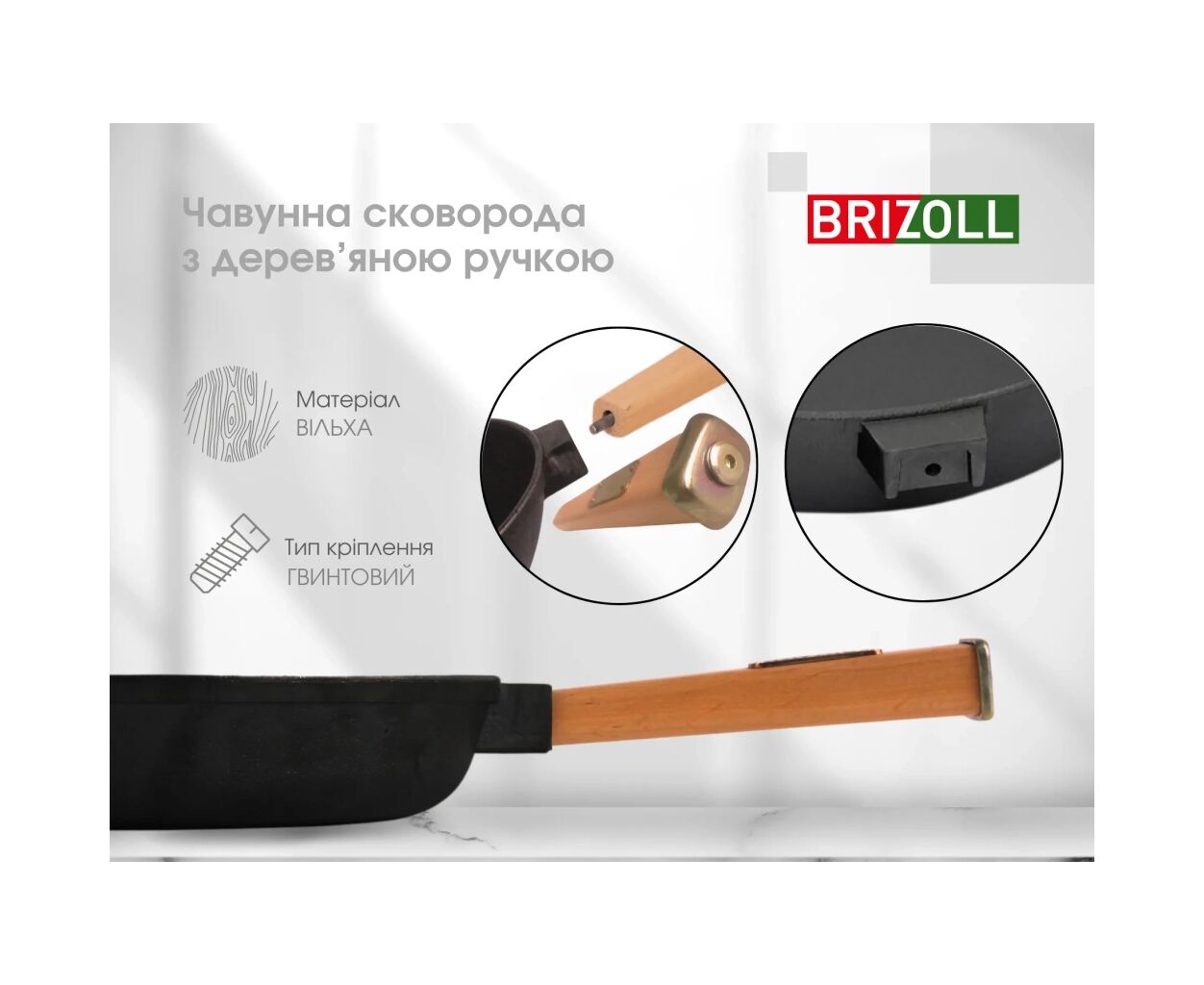 Характеристики Сковорода Brizoll Optima чавунна з ручкою та скляною кришкою 240х60 мм (O2460-P-C)