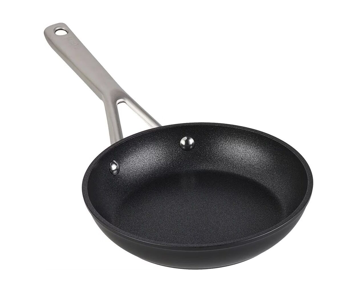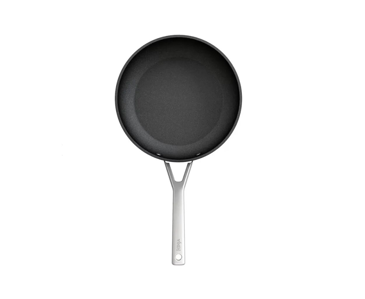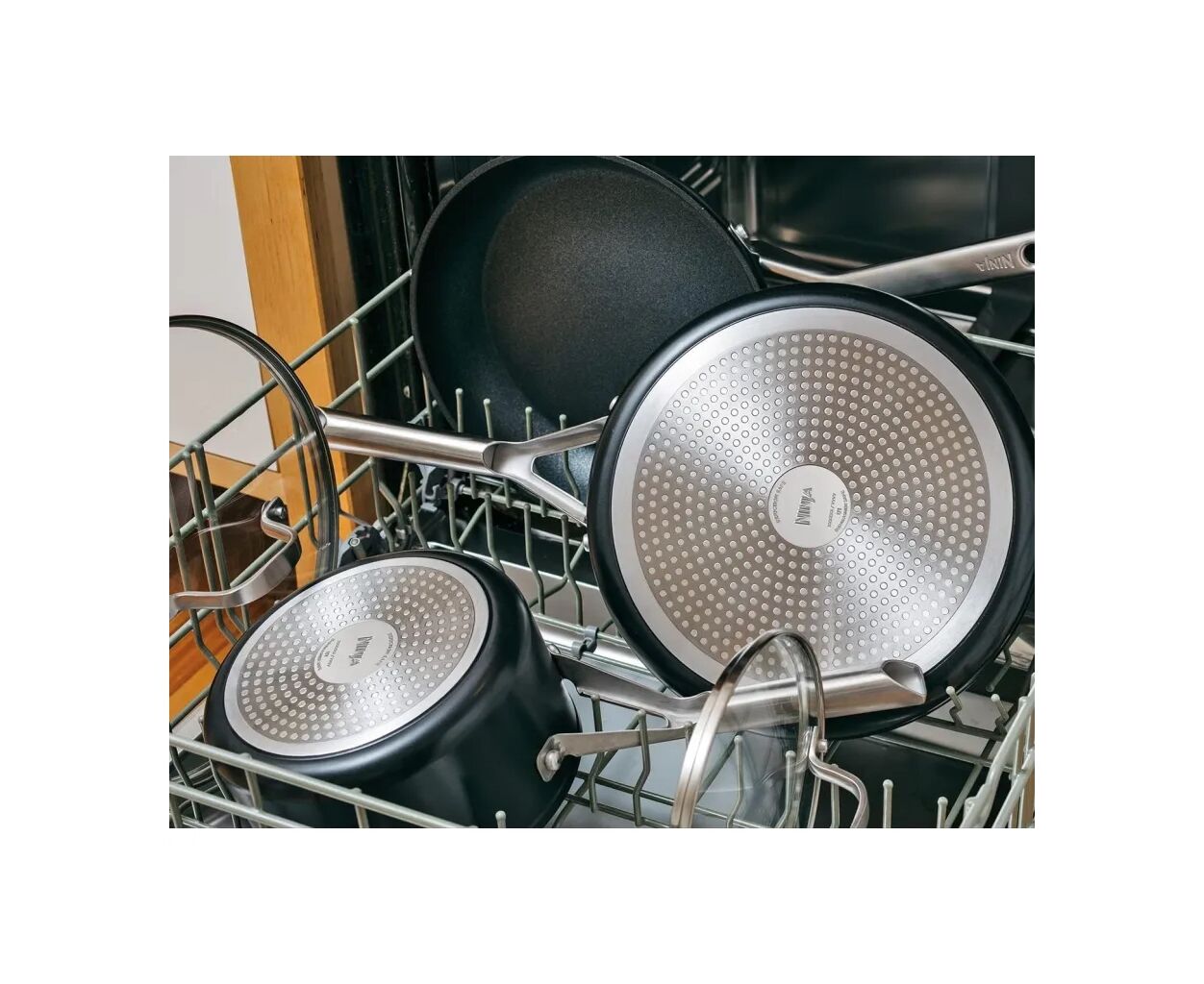 Сковорода створена для тривалої служби. Вона виготовлена з кованого алюмінію, має гладку зовнішню поверхню та зручні ручки з нержавіючої сталі. Покриття настільки міцне, що воно стійке до подряпин, придатне для миття у посудомийній машині і дозволяє використовувати металеві кухонні прибори. Крім того, воно не містить PFOA, свинцю та кадмію.