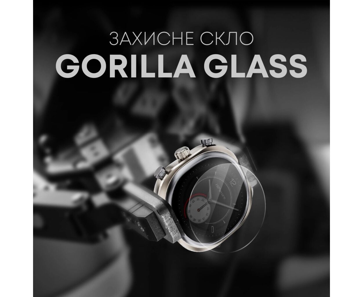 Корпус з цинкового сплаву виглядає стильно і надійно, а захисне скло Gorilla Glass захищає від подряпин і сколів, додаючи довговічності пристрою. Легкозмінний ремінець дозволяє вам підлаштувати годинник під будь-який стиль, будь то офіційний або повсякденний.