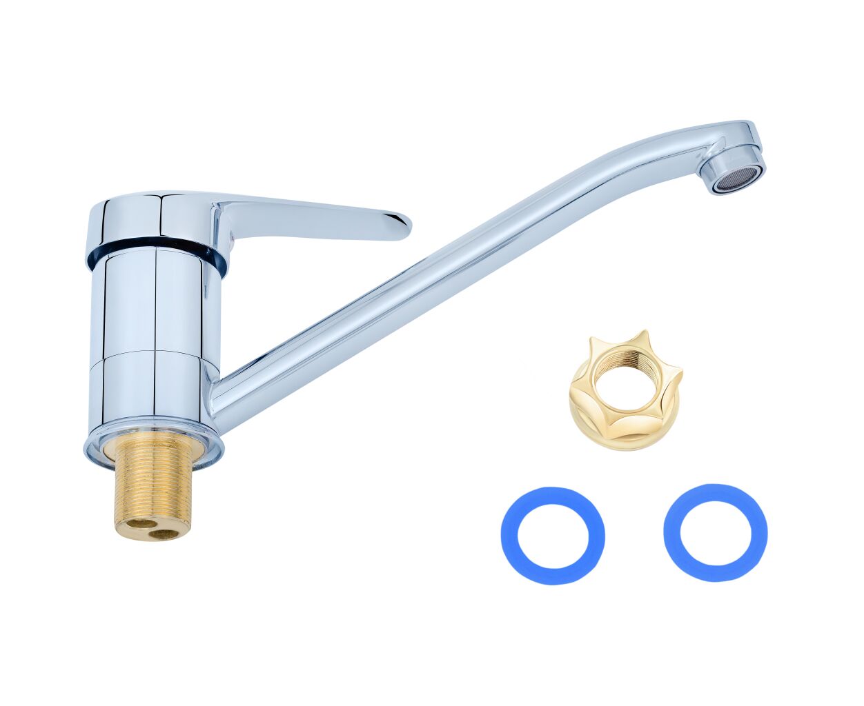 для раковини, одноважільний, врізний, силумін, поворотний, Довжина виливу - 24 см, Підключення - 1/2", Колір - сріблястий, Іспанія