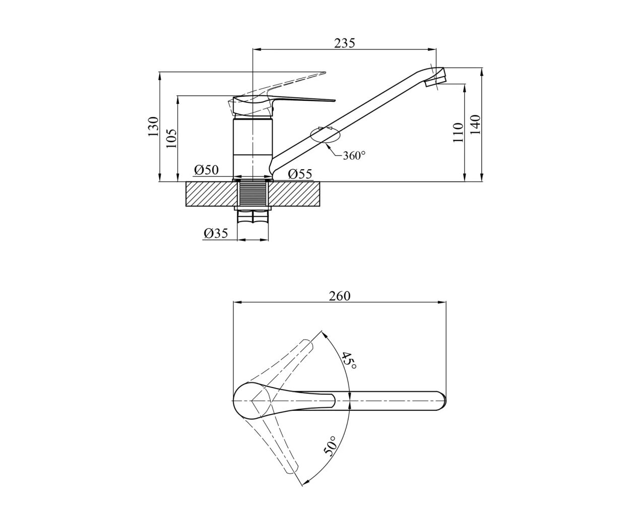 Висота змішувача